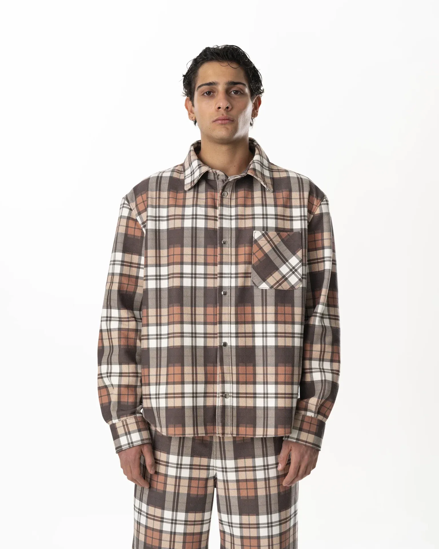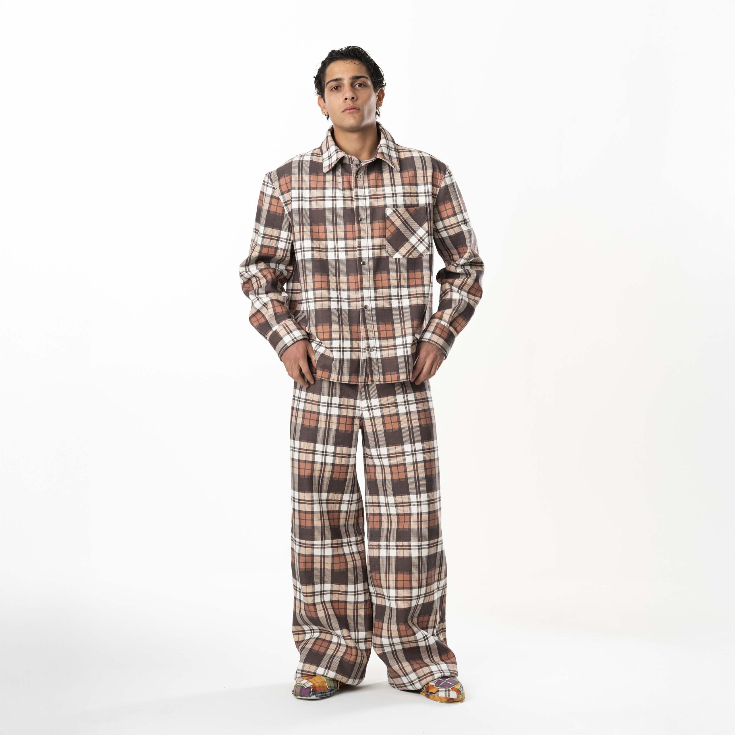 Leather Tartan Shirt – Brown