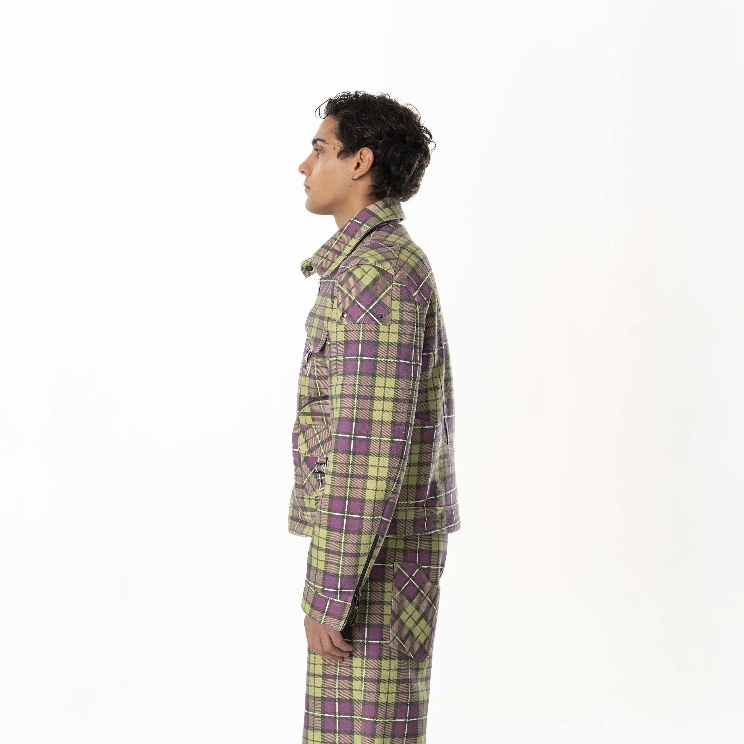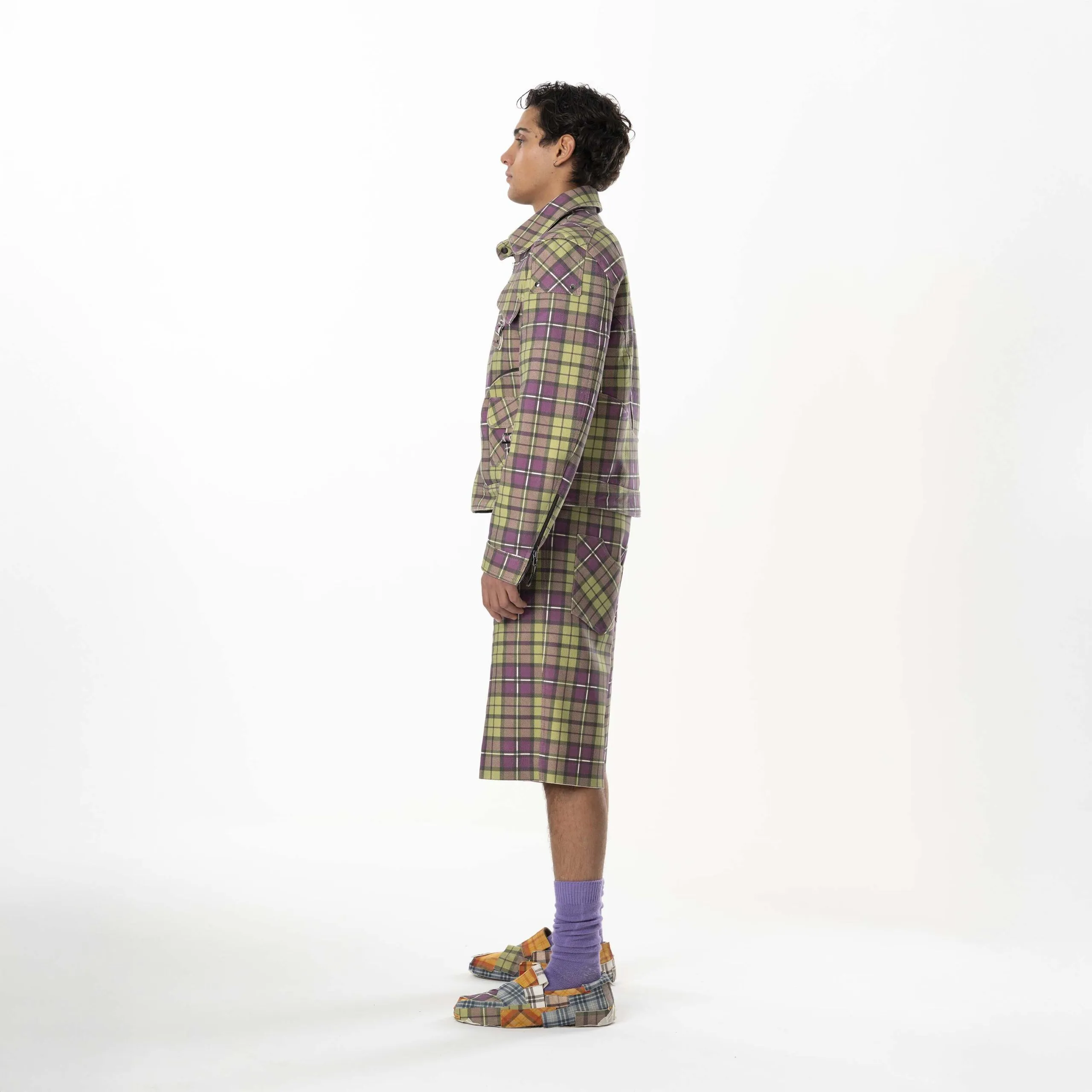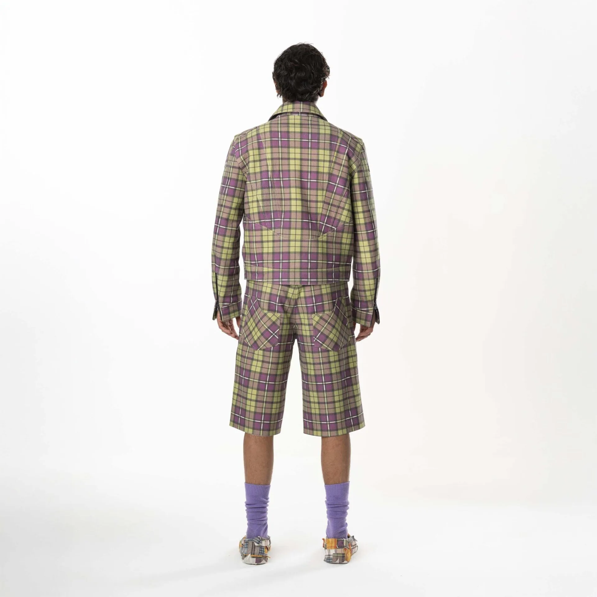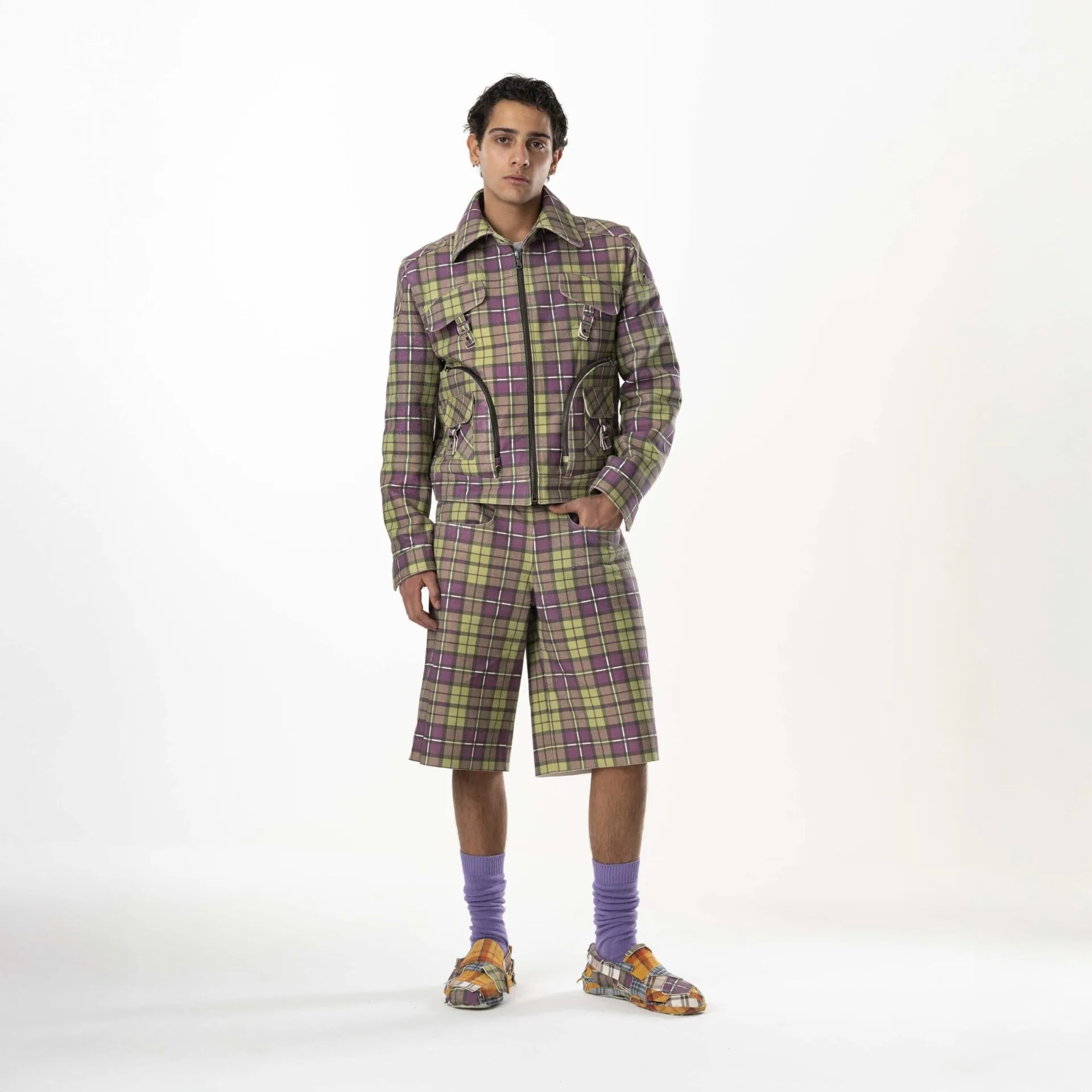 Il modello è alto 1,85 m e indossa una taglia medium | Colore: Tartan Purple Green.