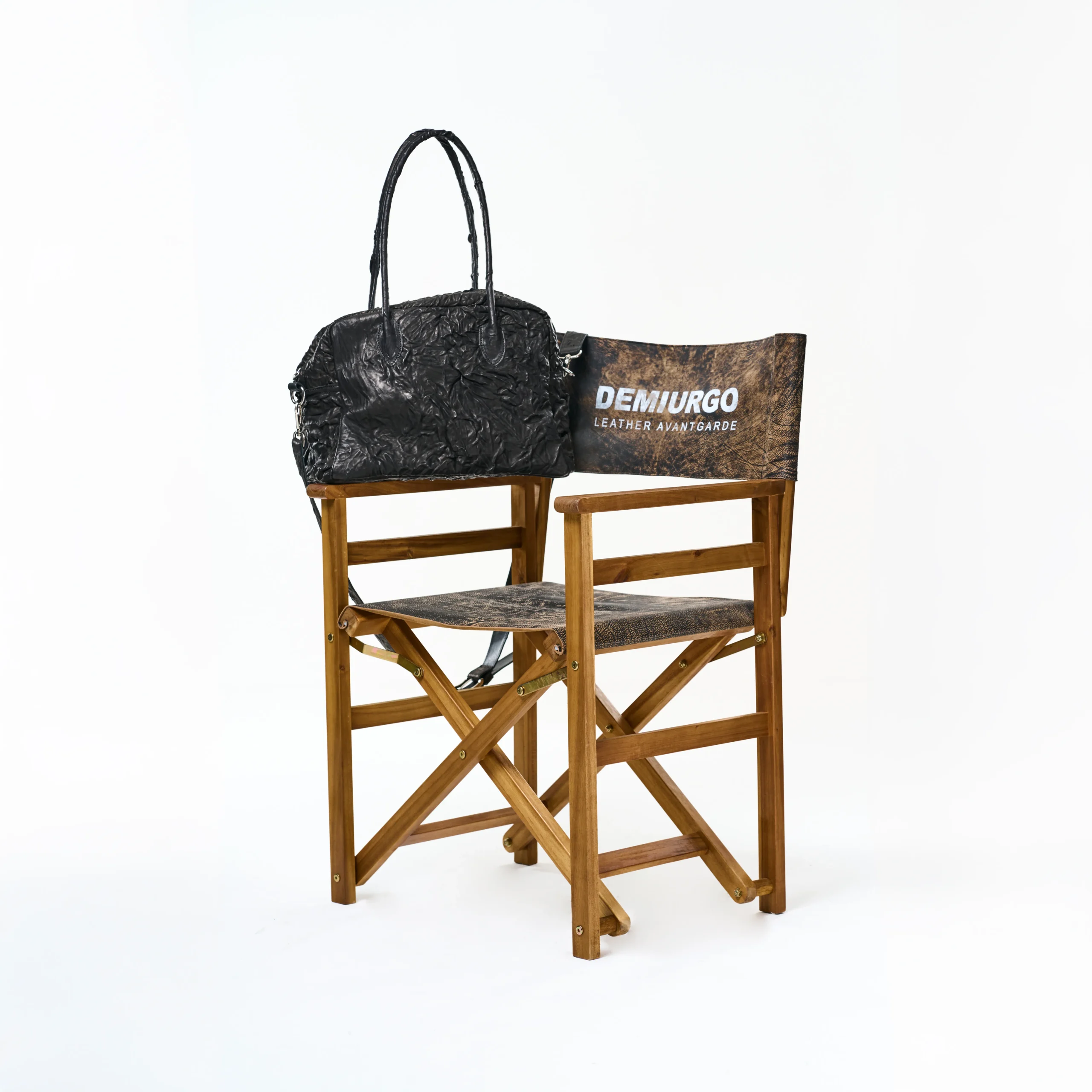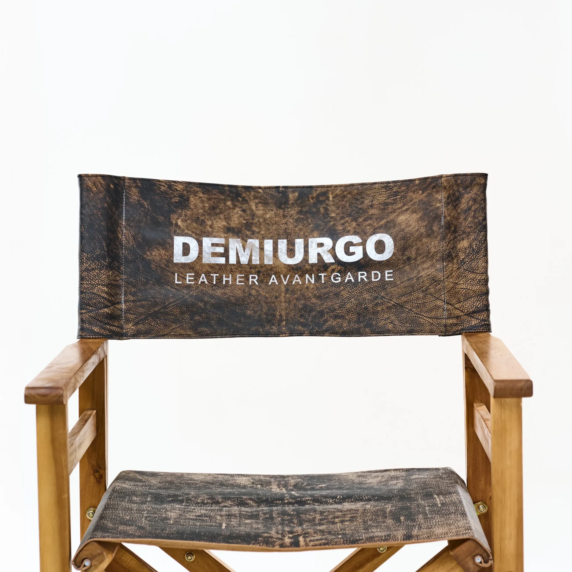 Logo DEMIURGO – LEATHER AVANT-GARDE serigrafato sullo schienale.