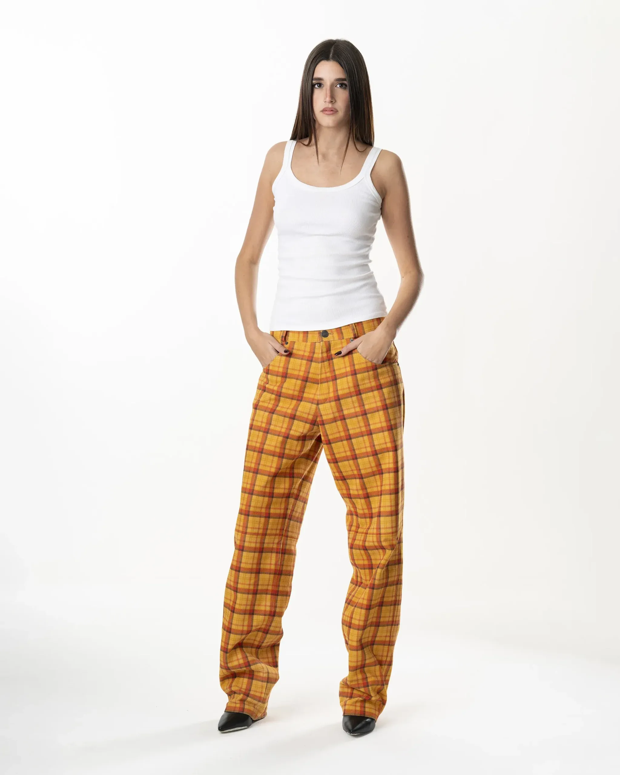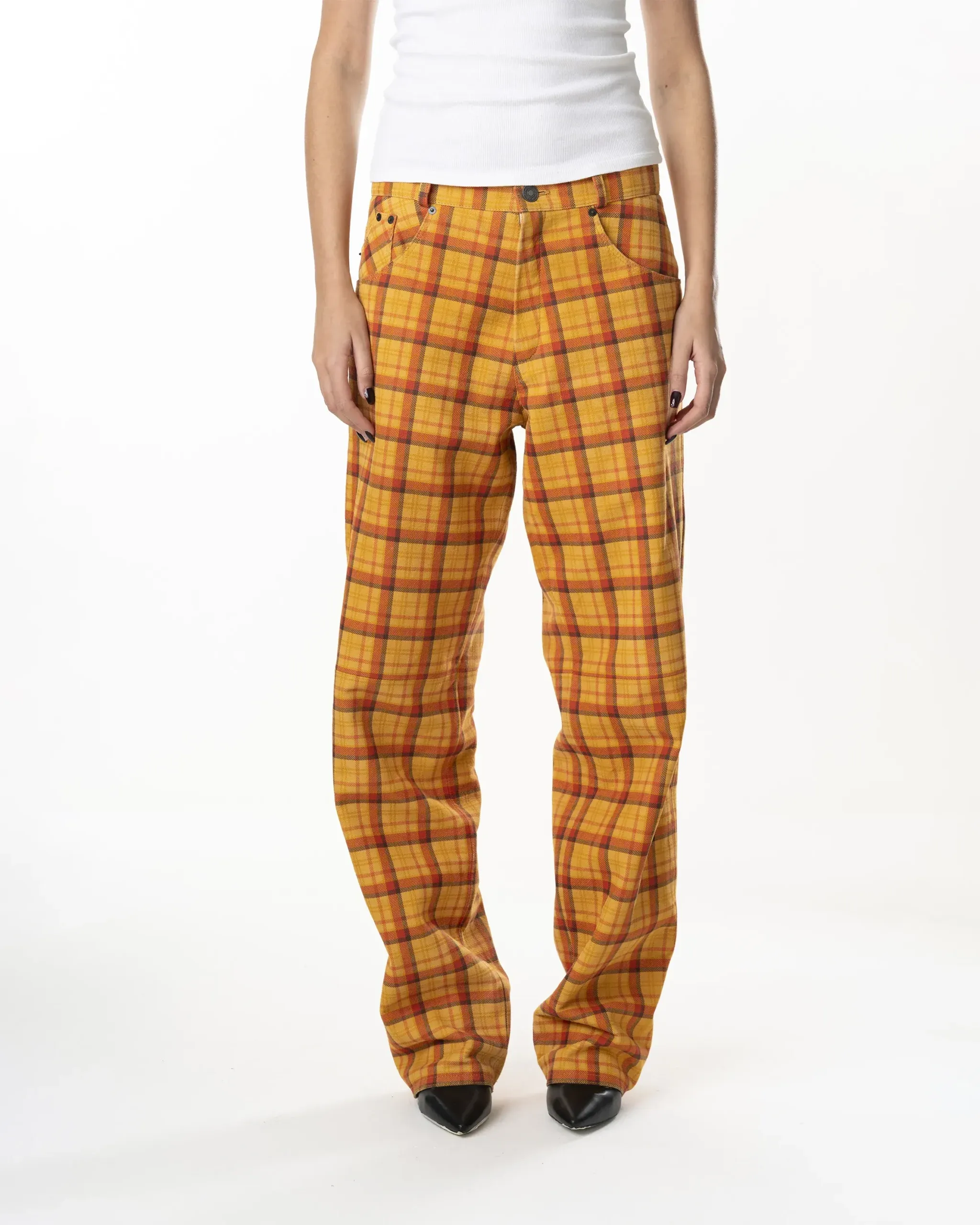 Leather Tartan Pant – Yellow