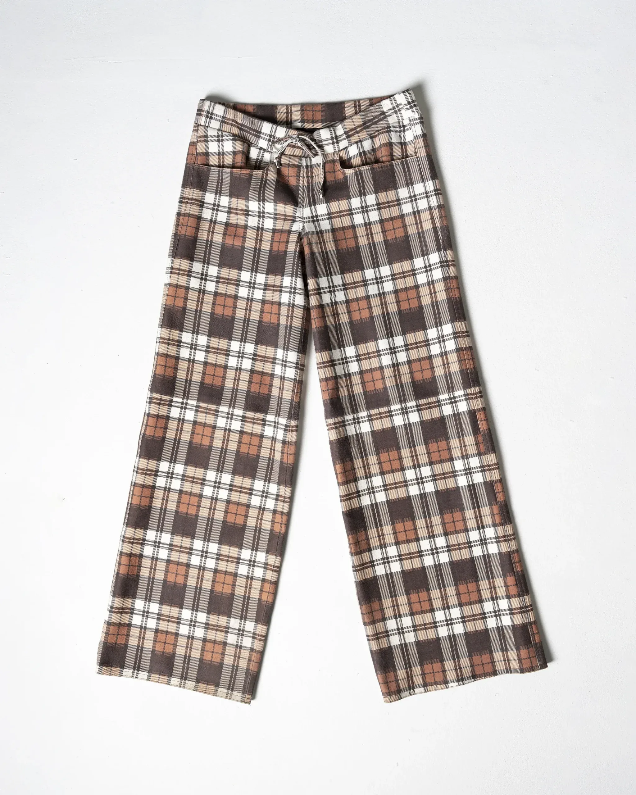Pantalone in pelle tartan vita regolare con molla regolabile, vestibilità baggy.