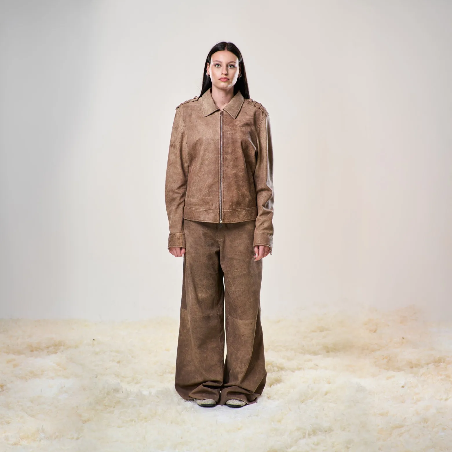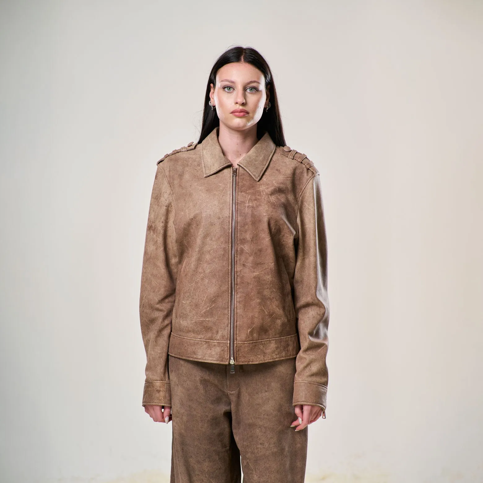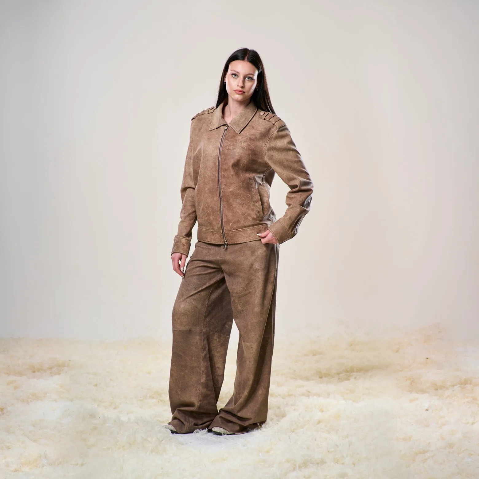 • Pelli di agnello traforate e sottoposte a lavaggio, ultra leggere: rendono ogni pezzo unico.