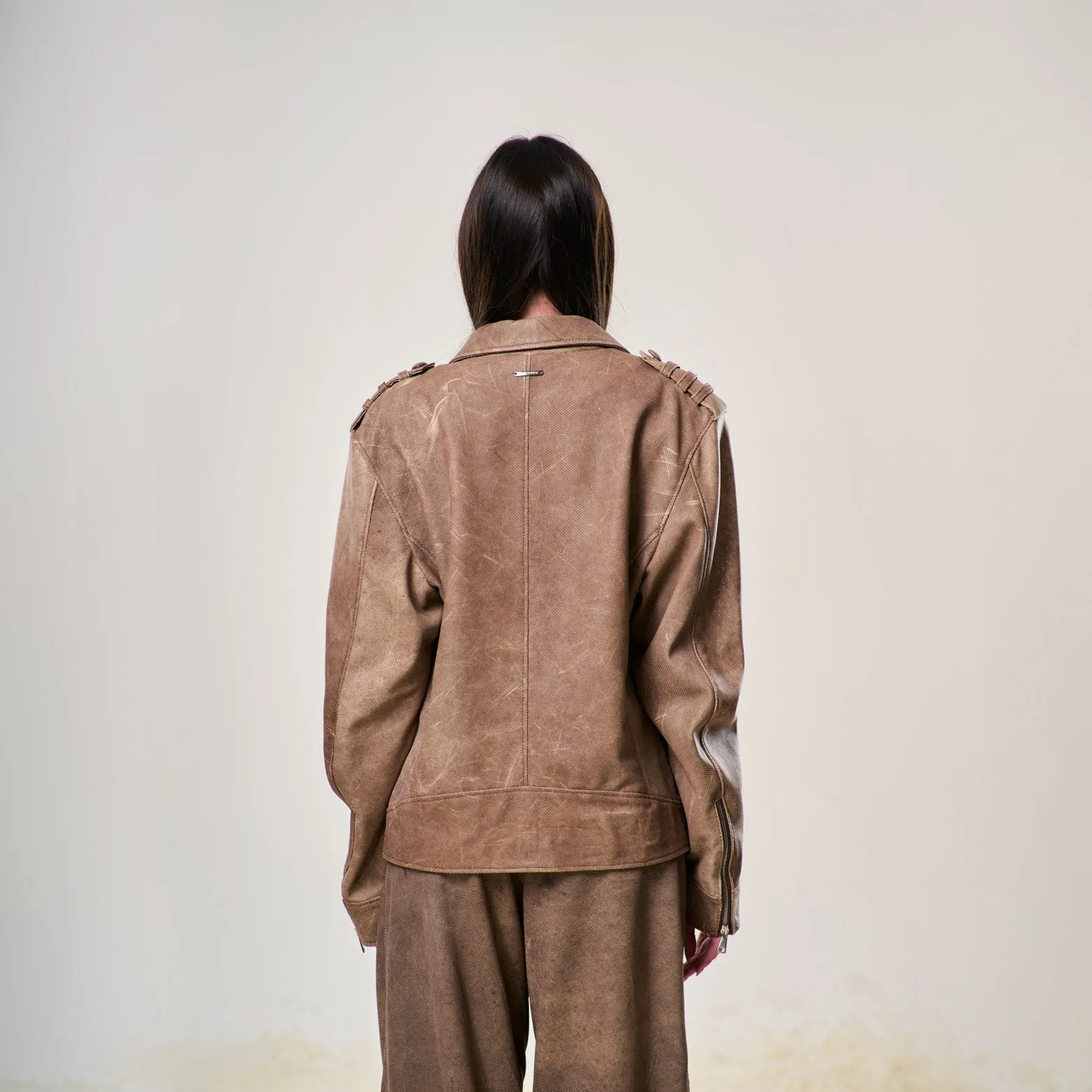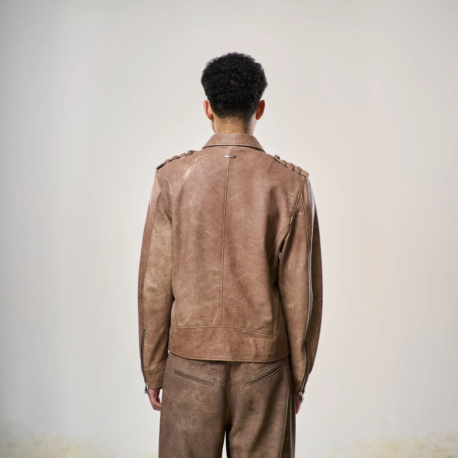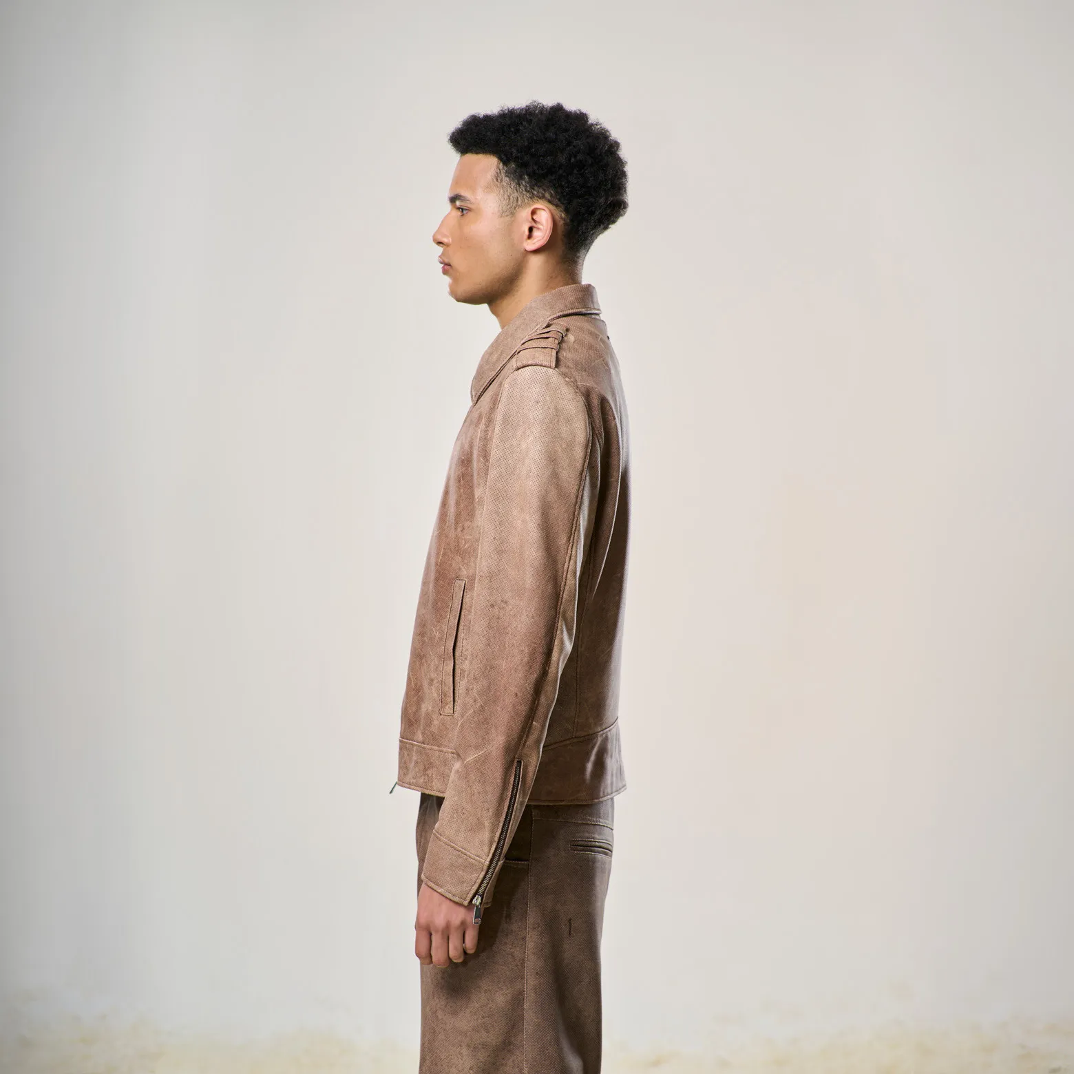 Biker in pelle traforata ultra-leggera, progettato per un’estetica contemporanea e una maggiore traspirabilità.