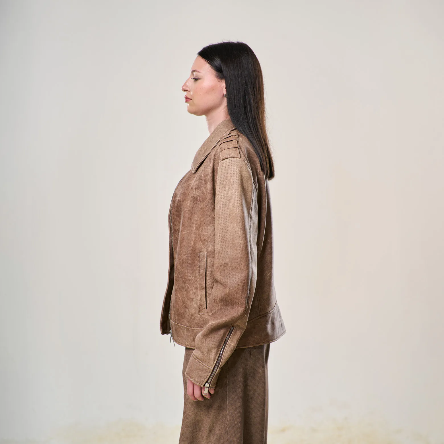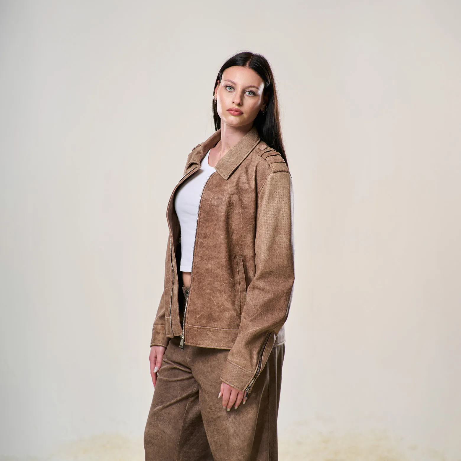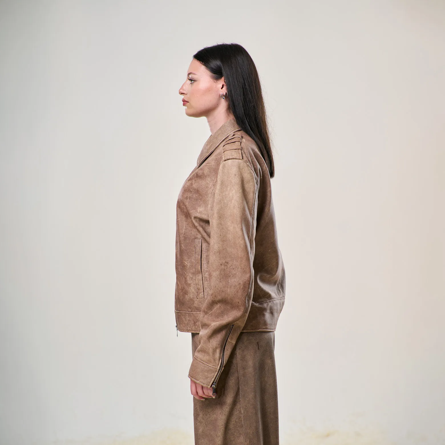 Biker in pelle traforata ultra-leggera, progettato per un’estetica contemporanea e una maggiore traspirabilità.