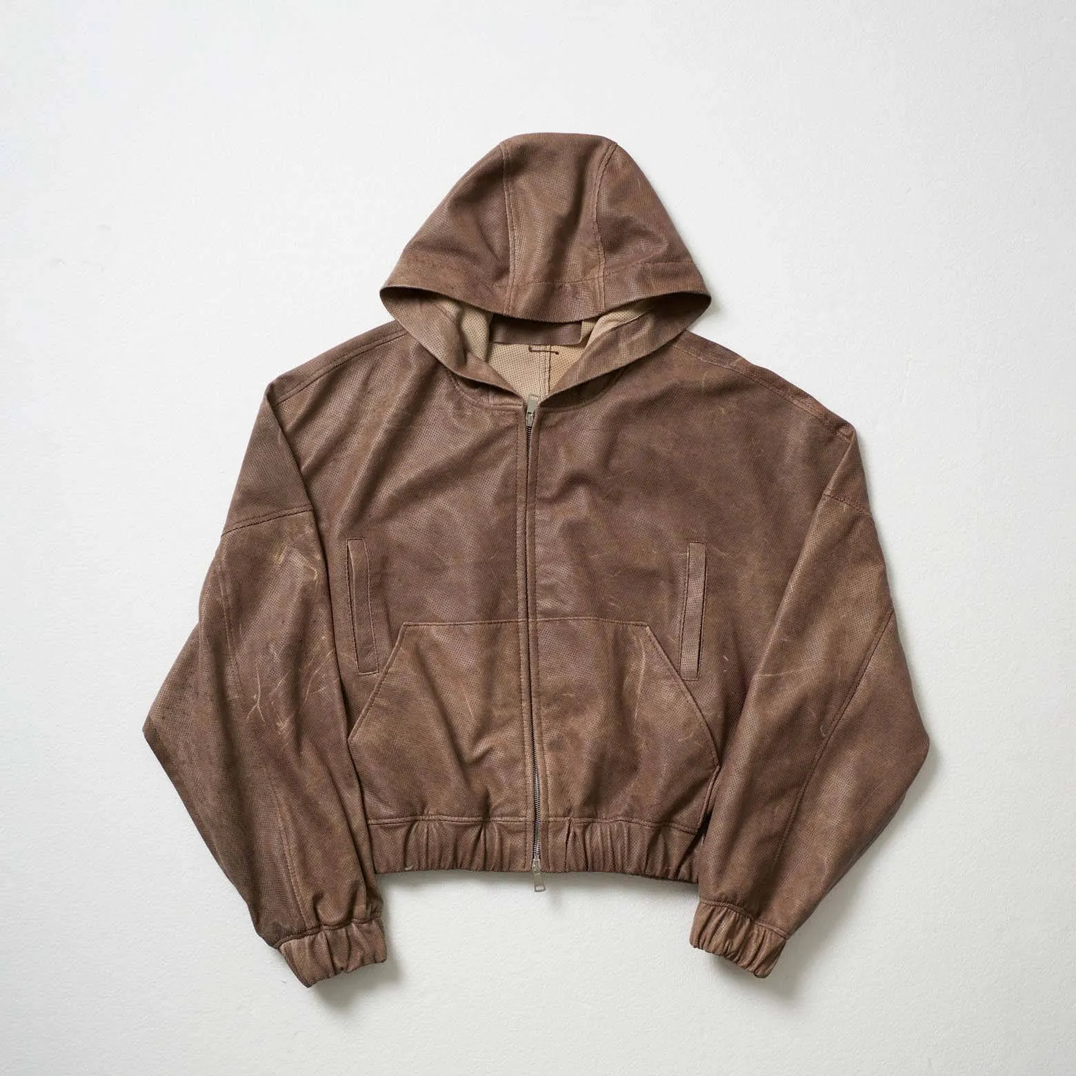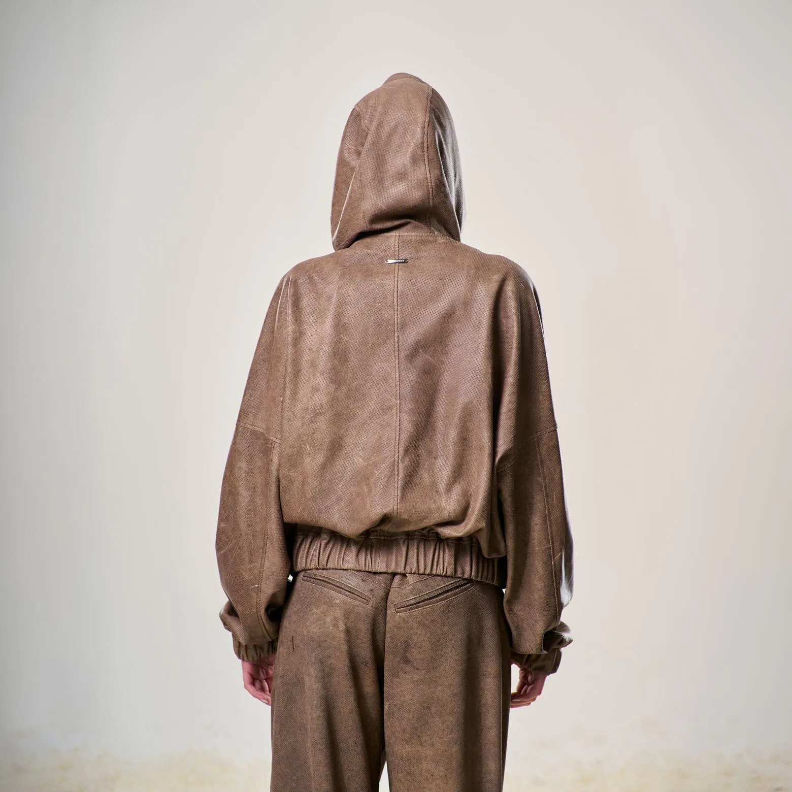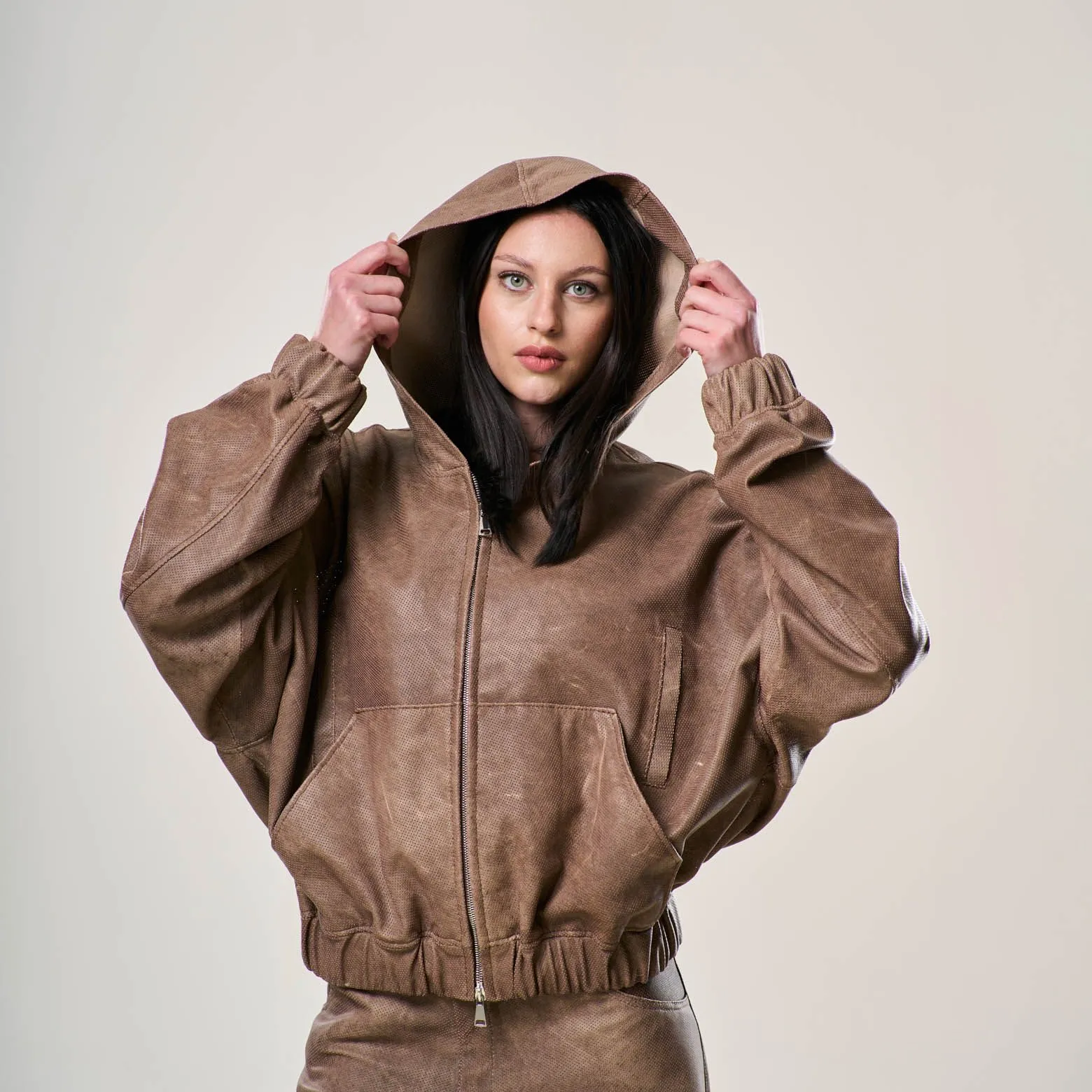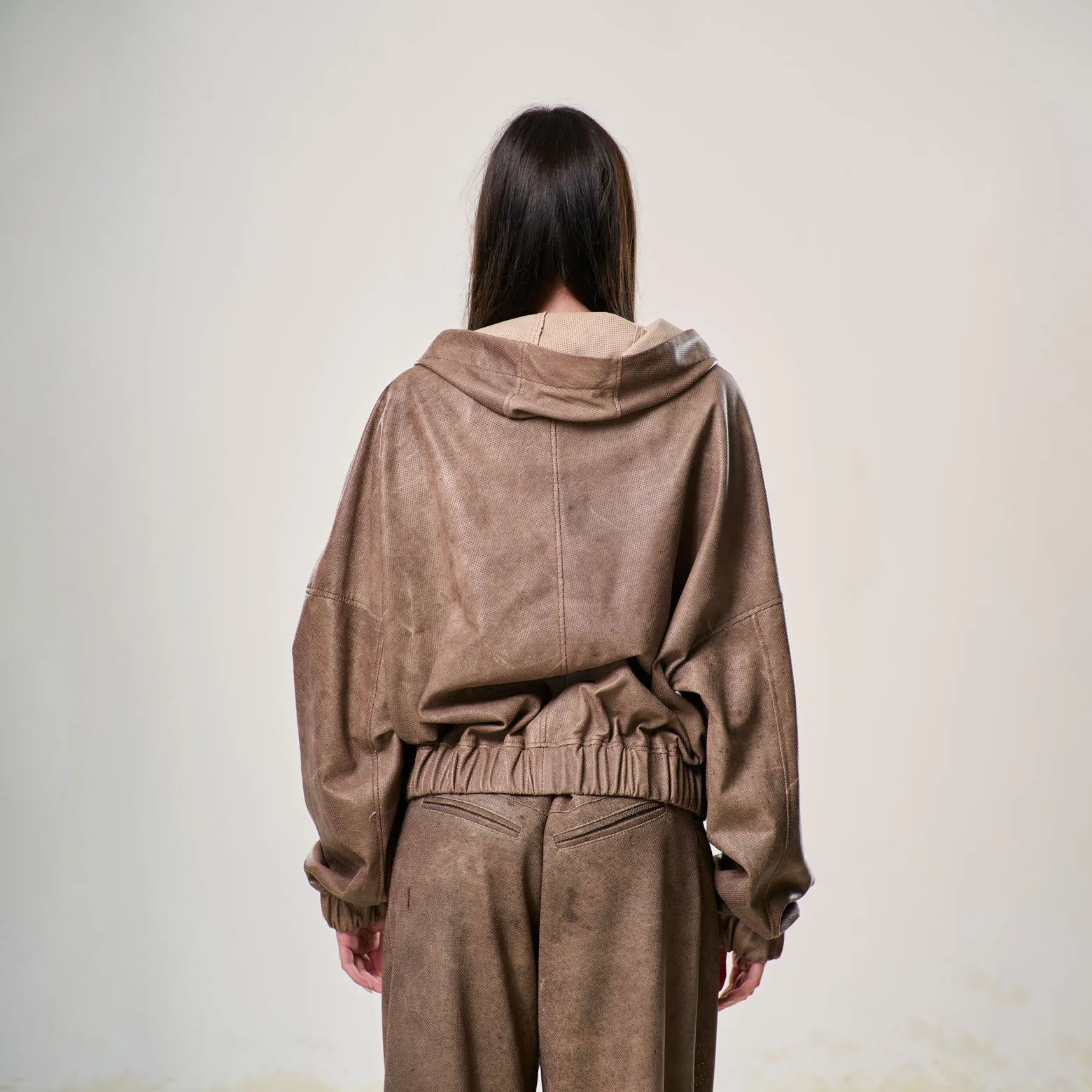 Perforated Leather Hoodie – Light Brown