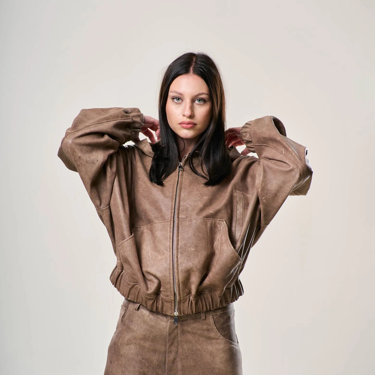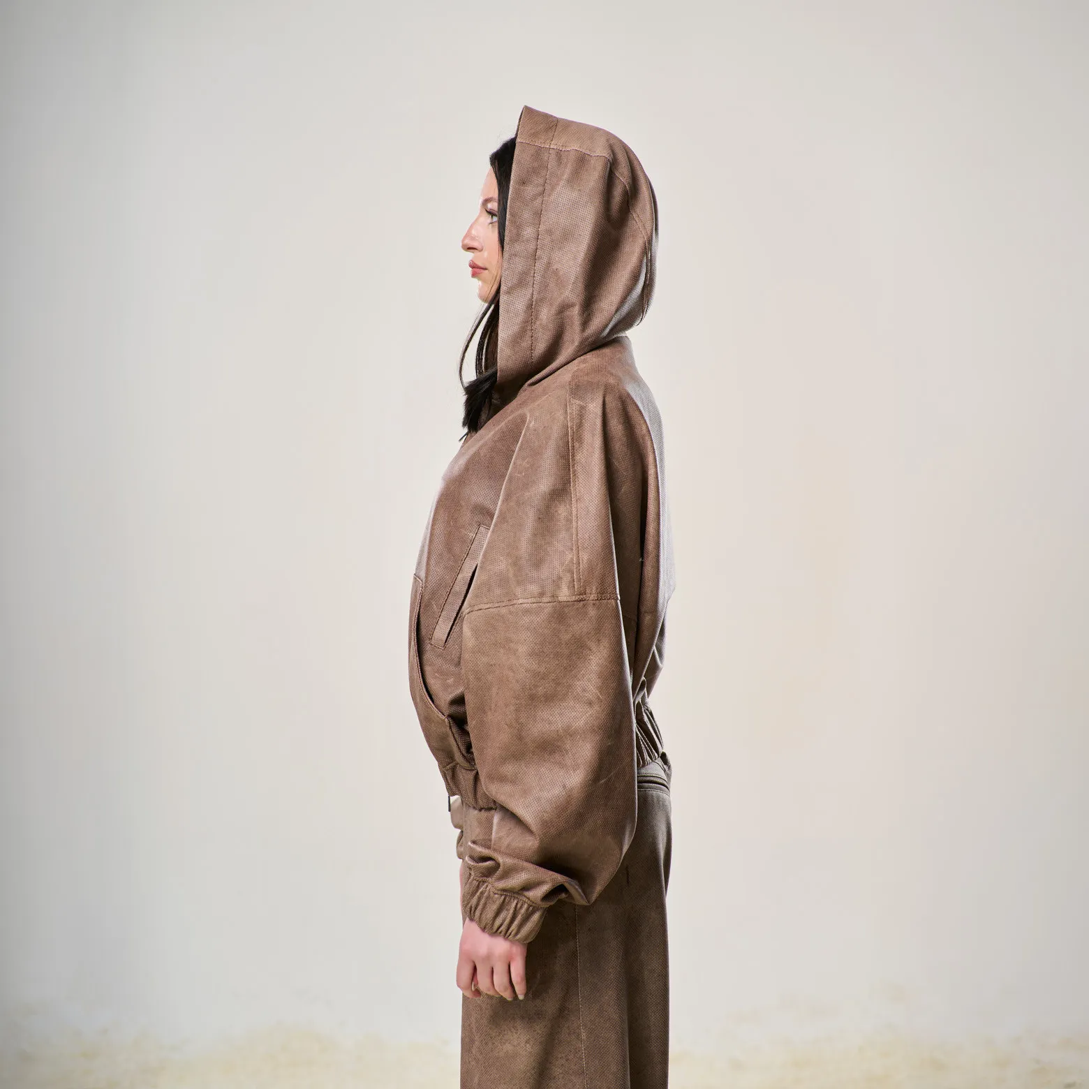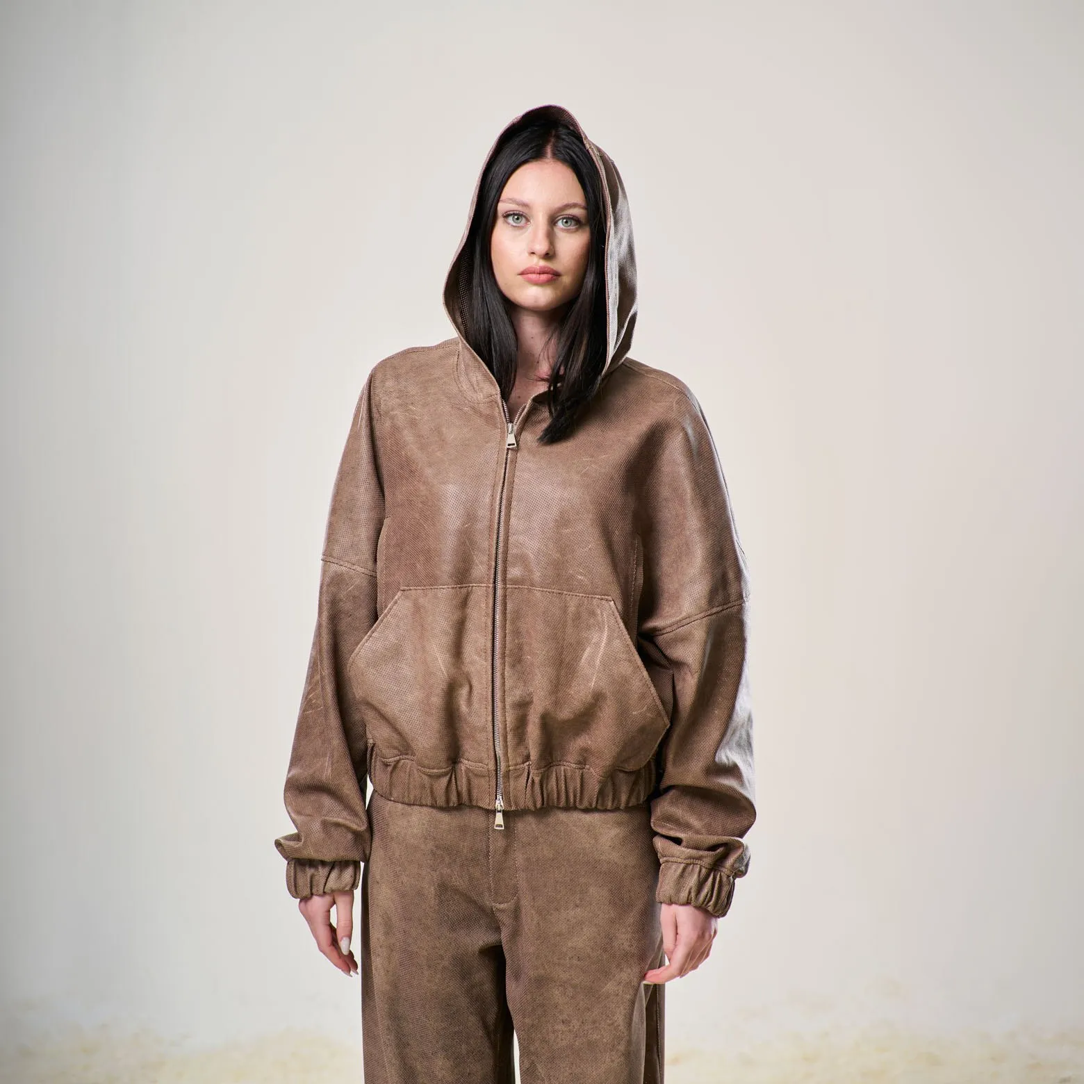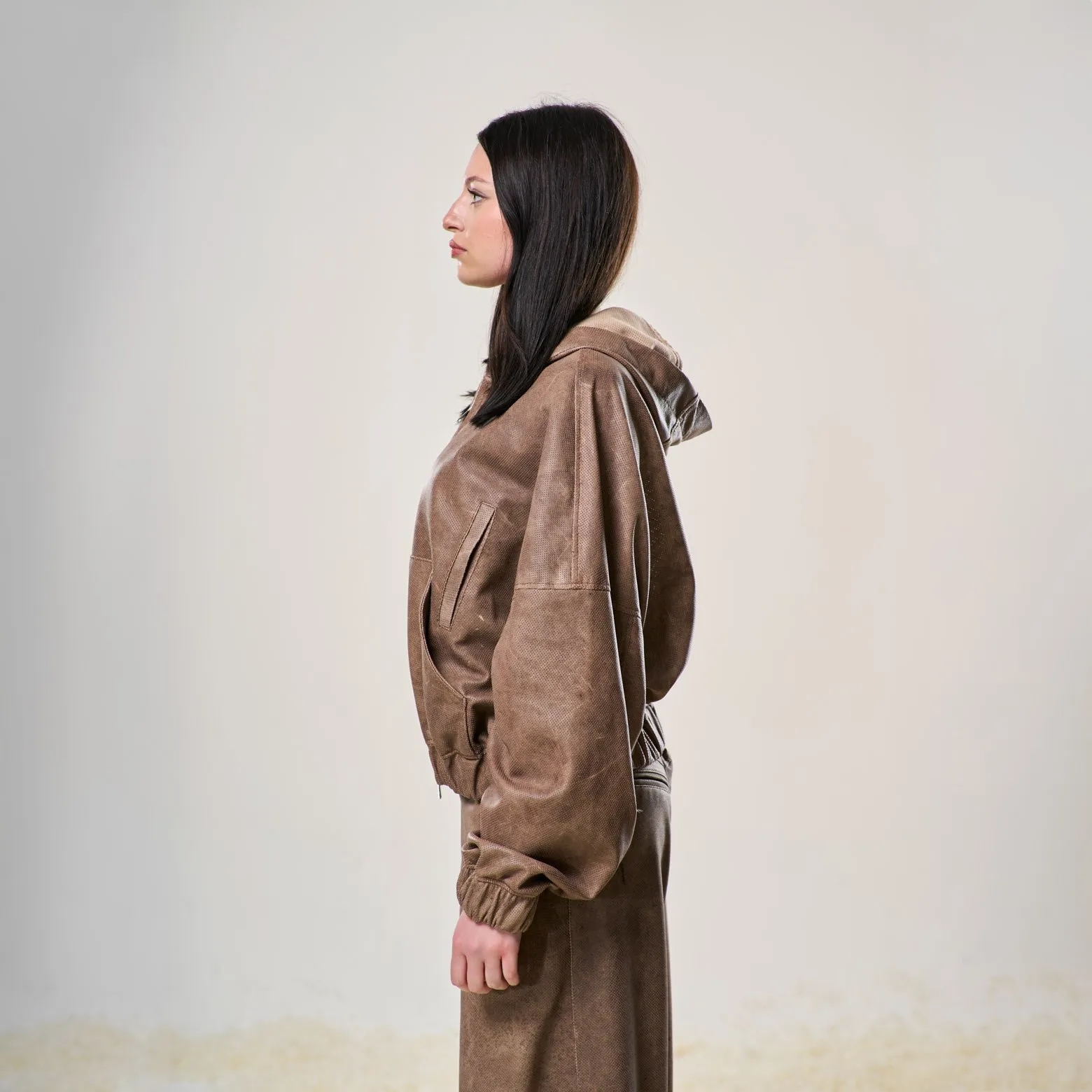 Perforated Leather Hoodie – Light Brown