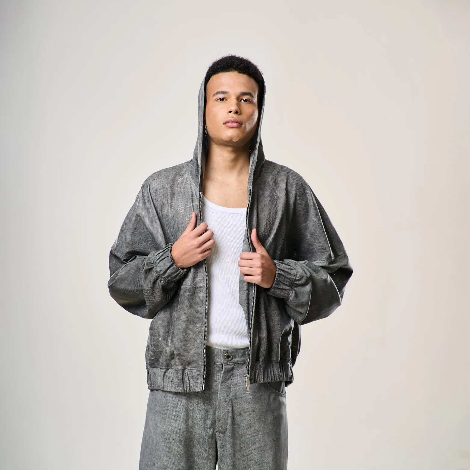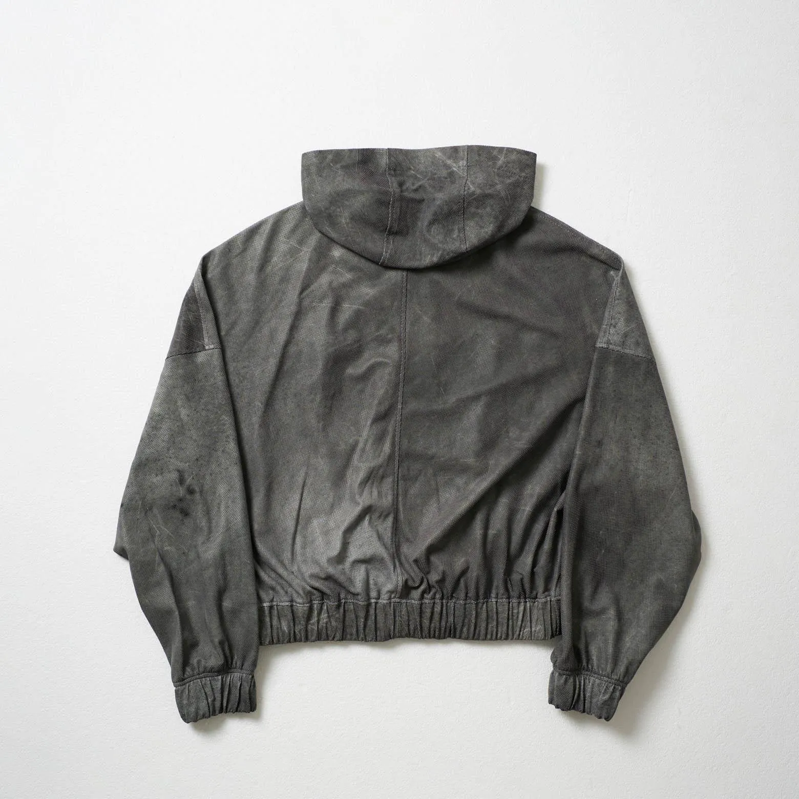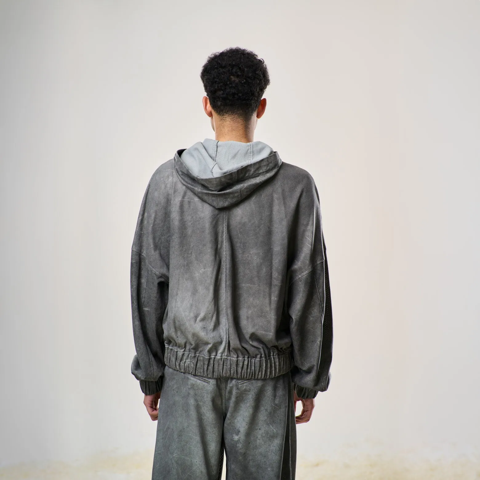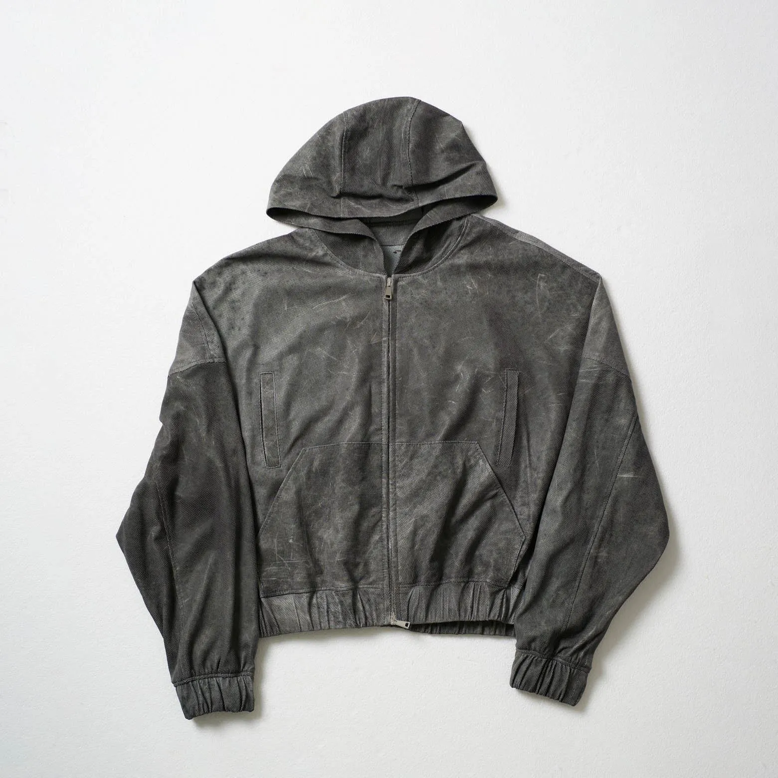 Felpa in pelle traforata dal taglio boxy, pensata per leggerezza e libertà di movimento.