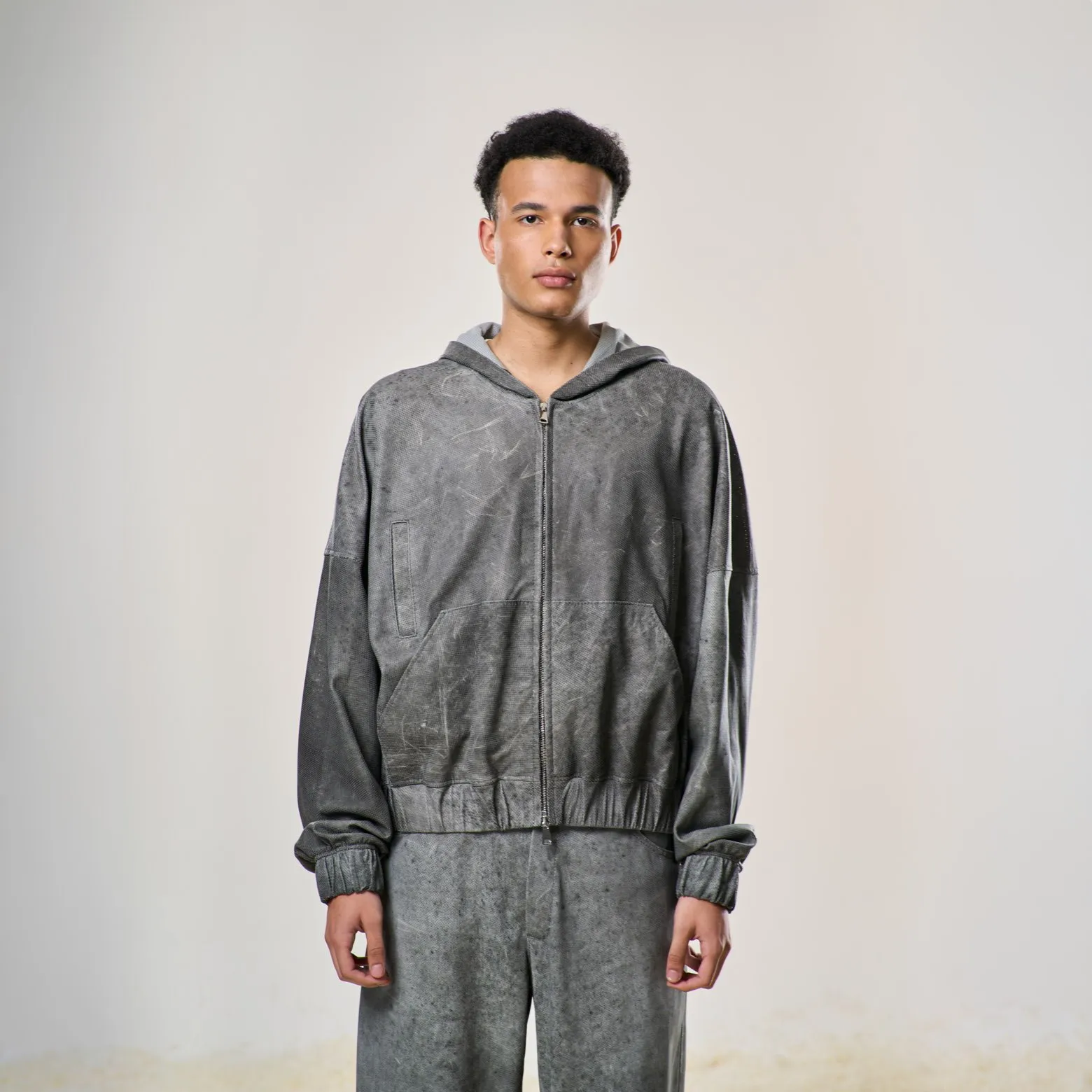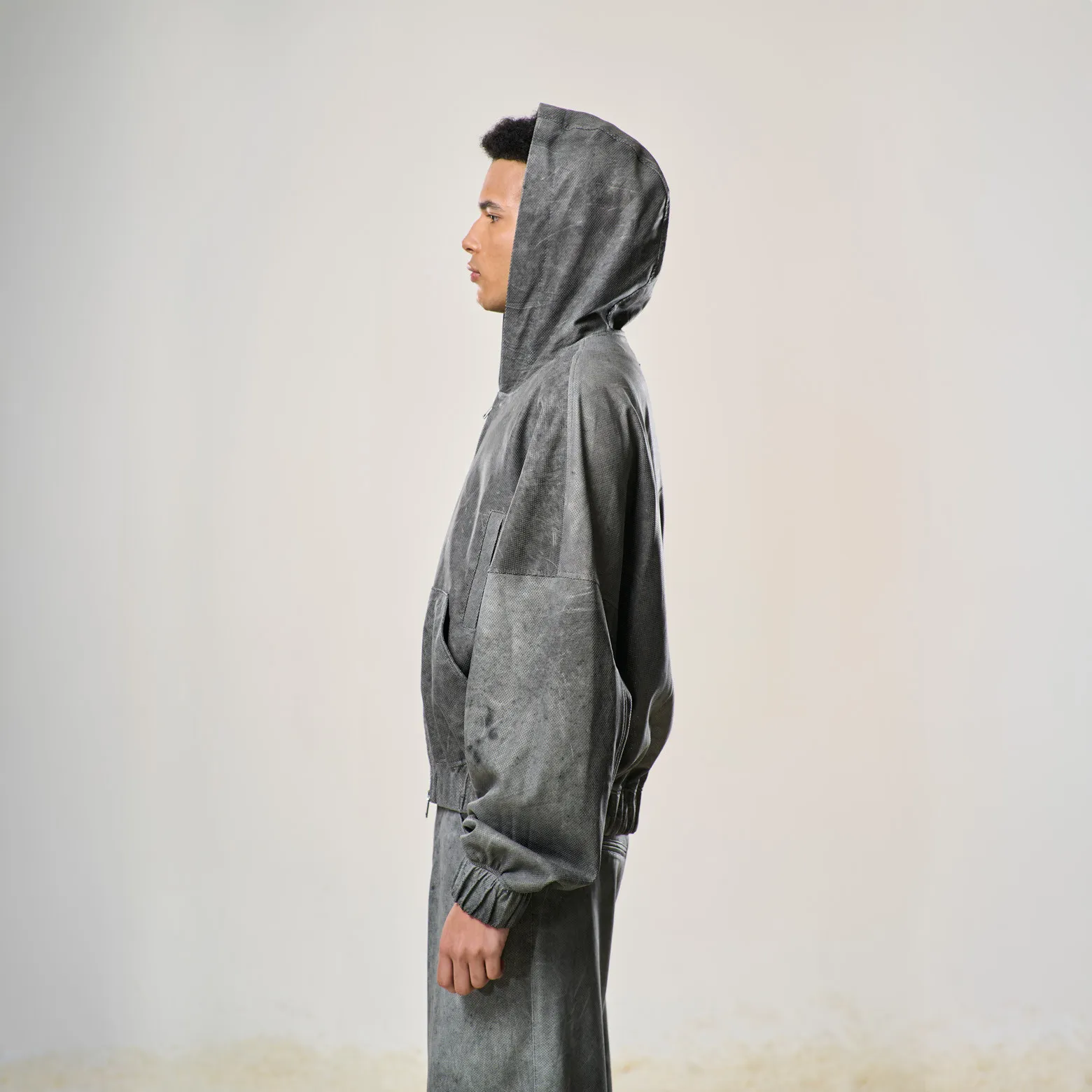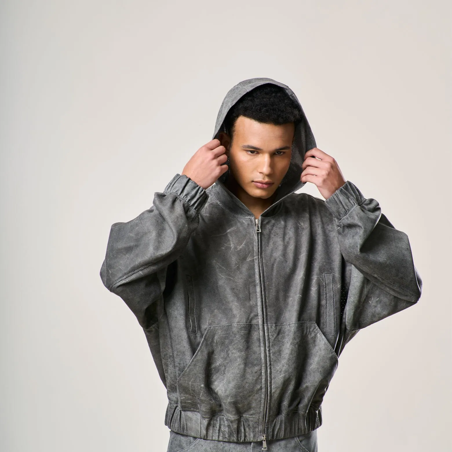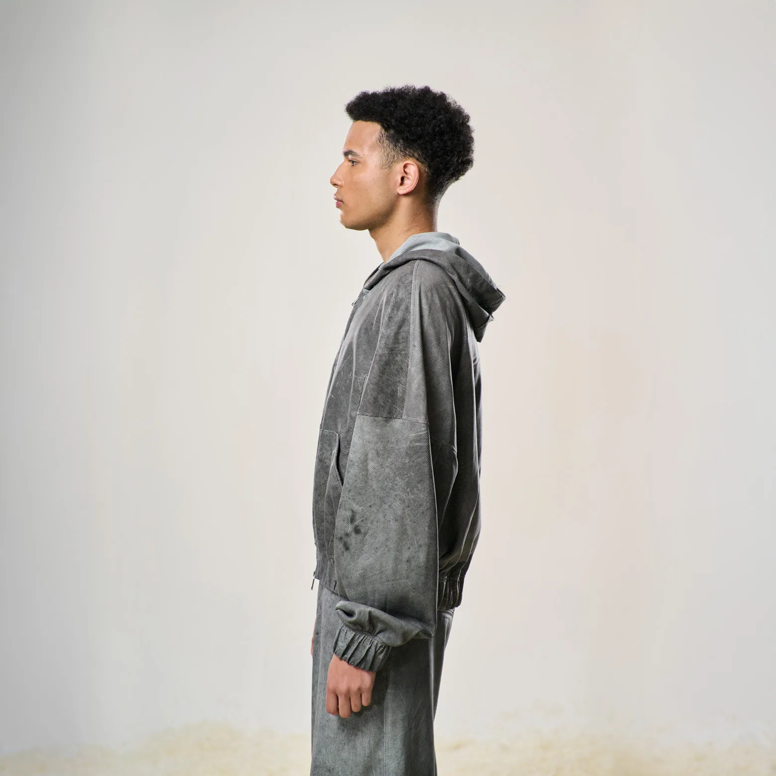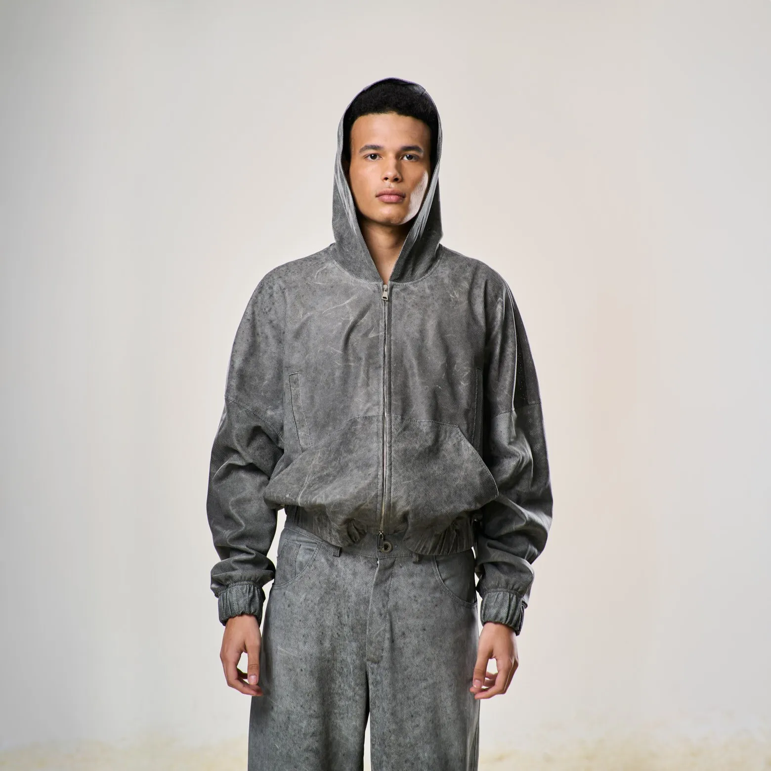 Felpa in pelle traforata dal taglio boxy, pensata per leggerezza e libertà di movimento.
