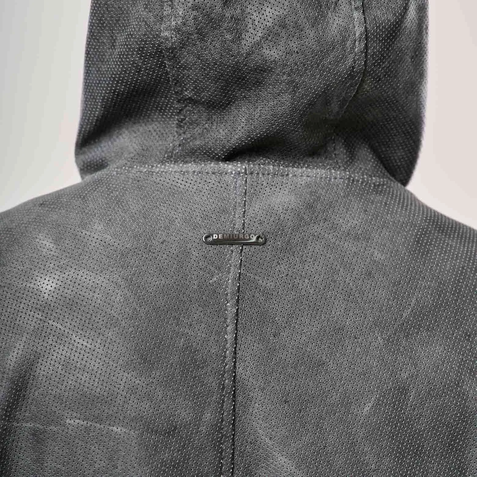 • Pelli di agnello traforate e sottoposte a lavaggio, ultra leggere: rendono ogni pezzo unico.