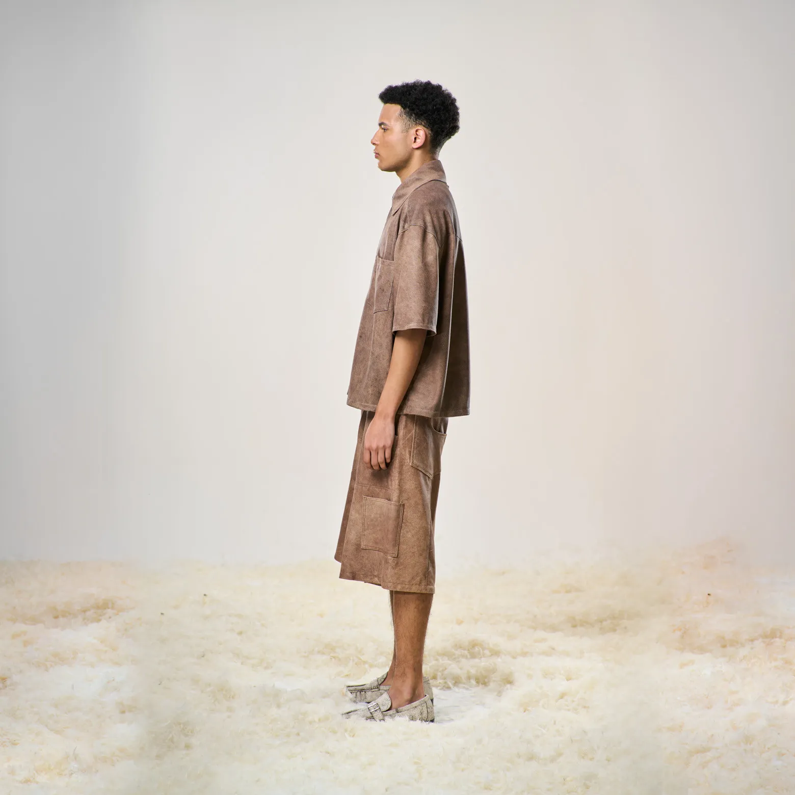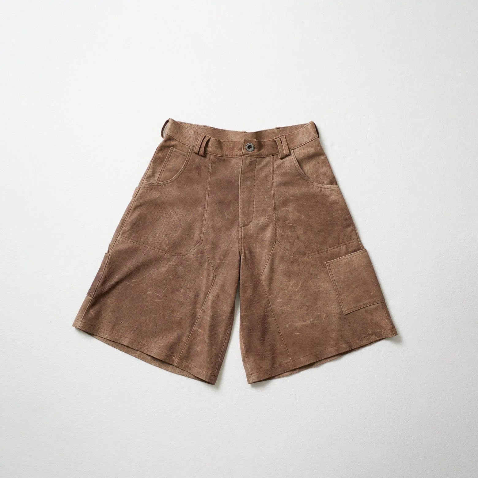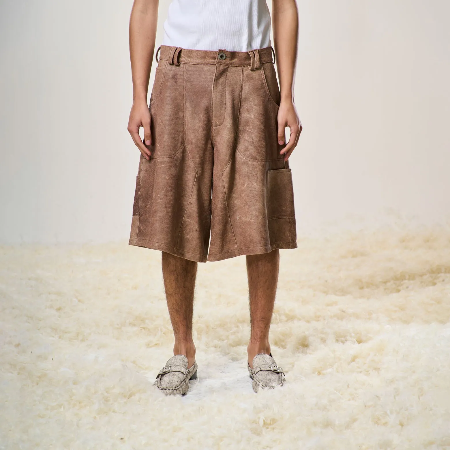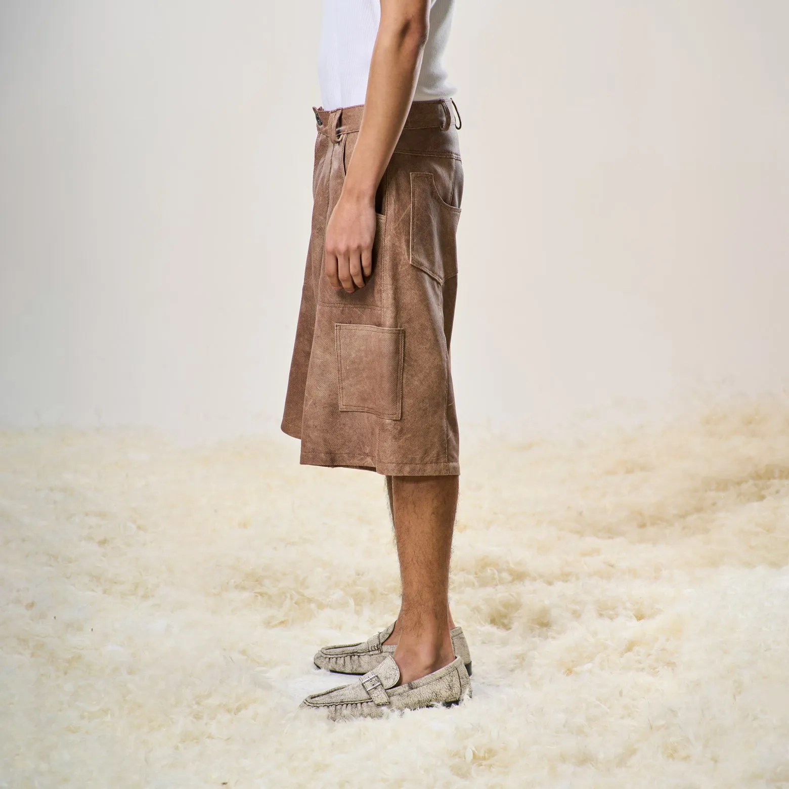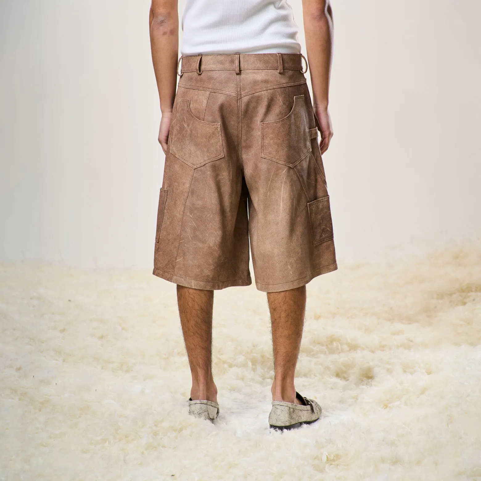 Perforated Leather Jorts – Light Brown