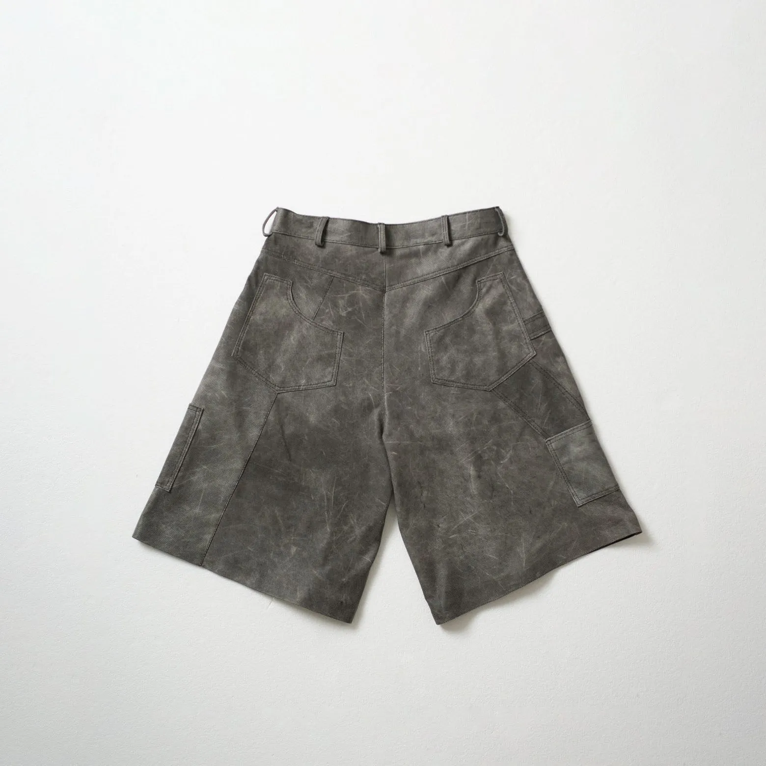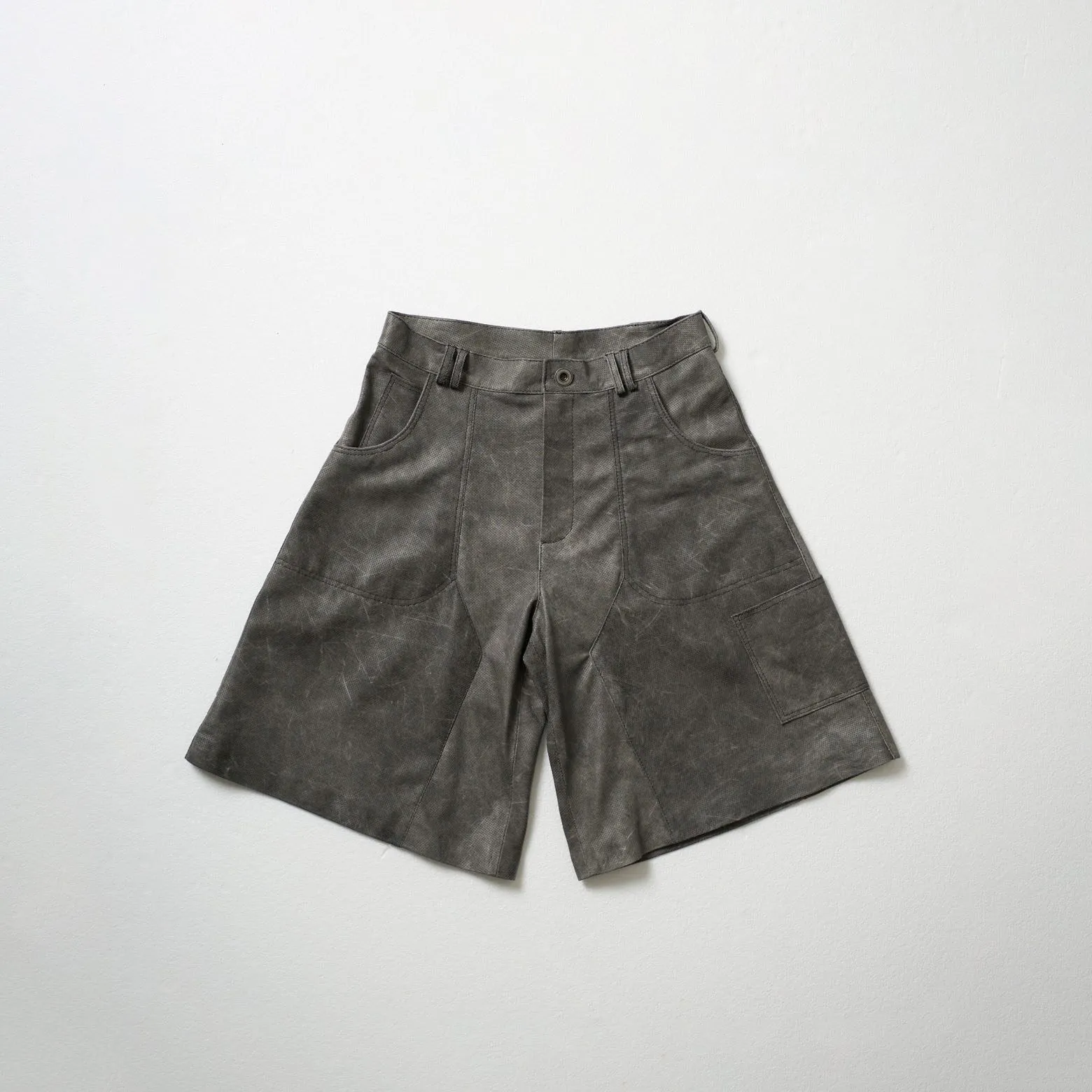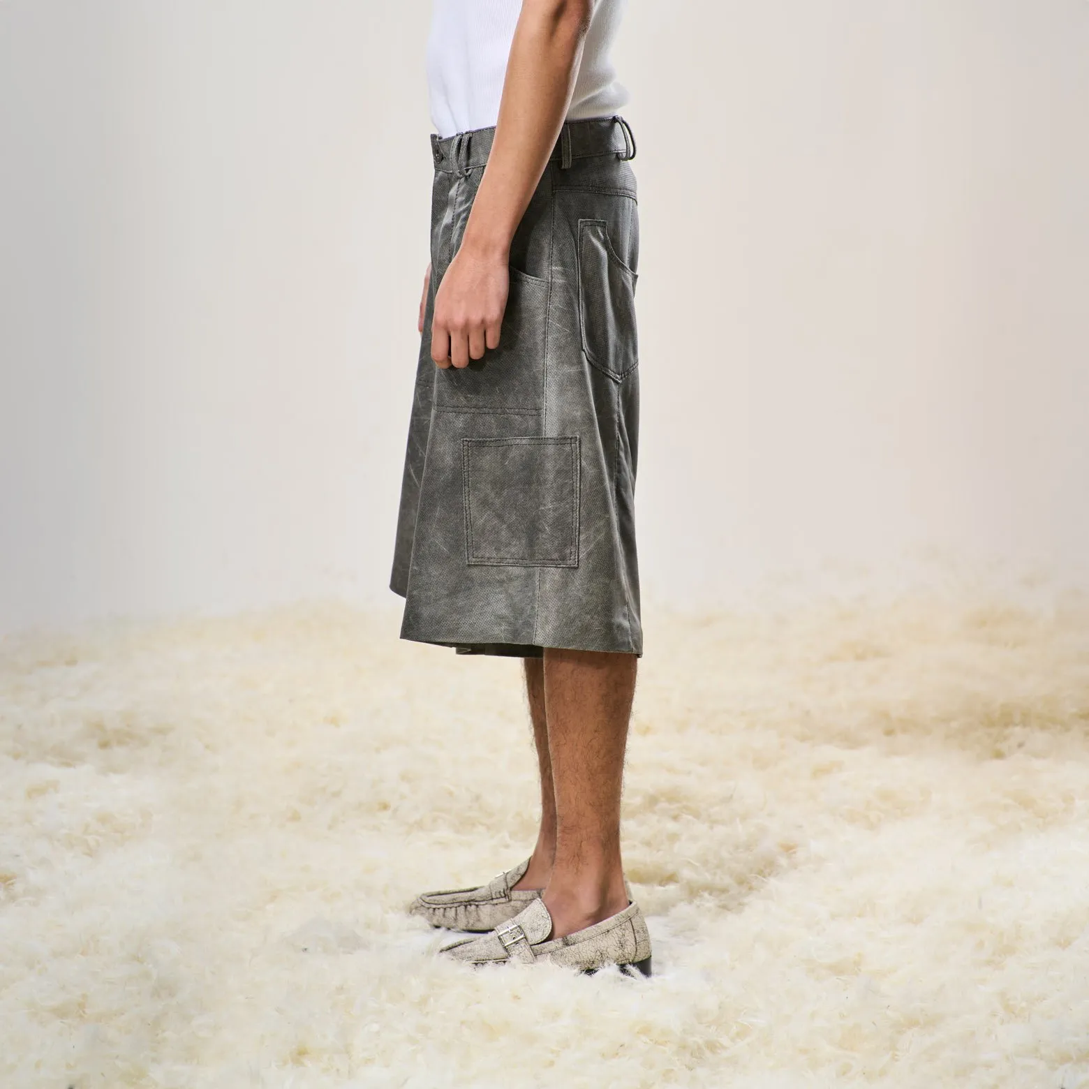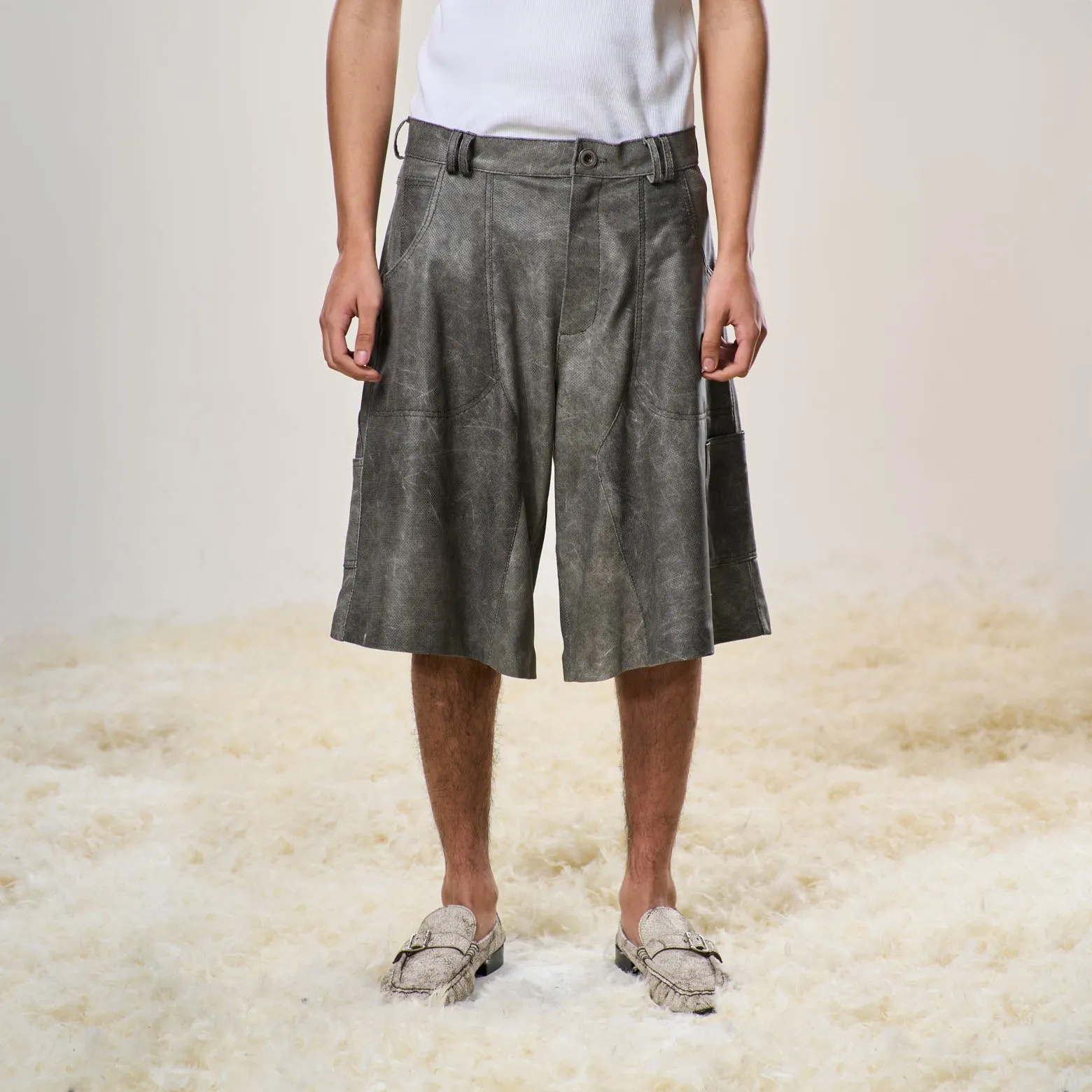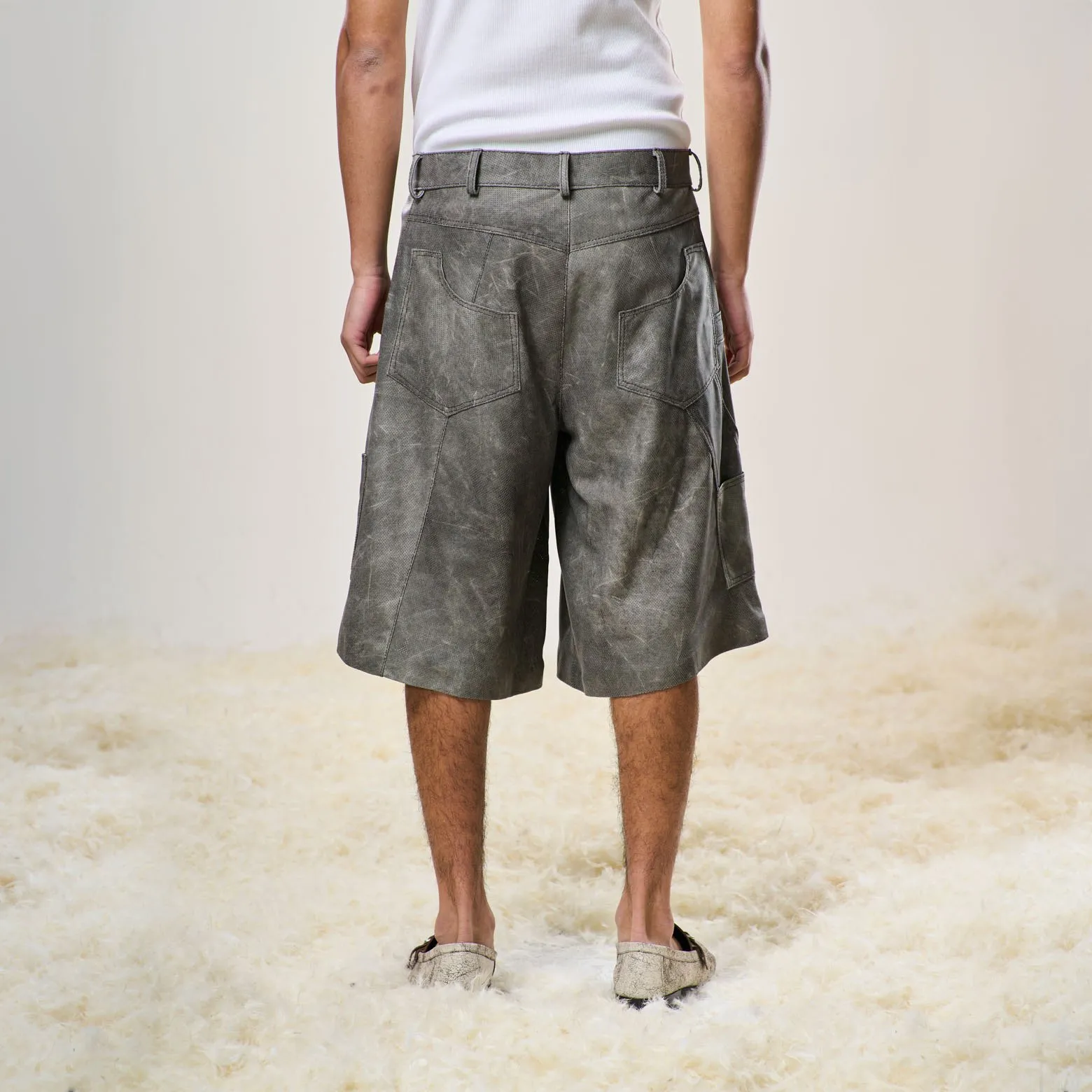 Perforated Leather Jorts – Light Grey