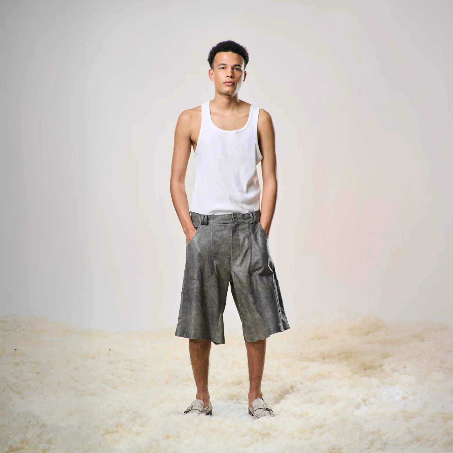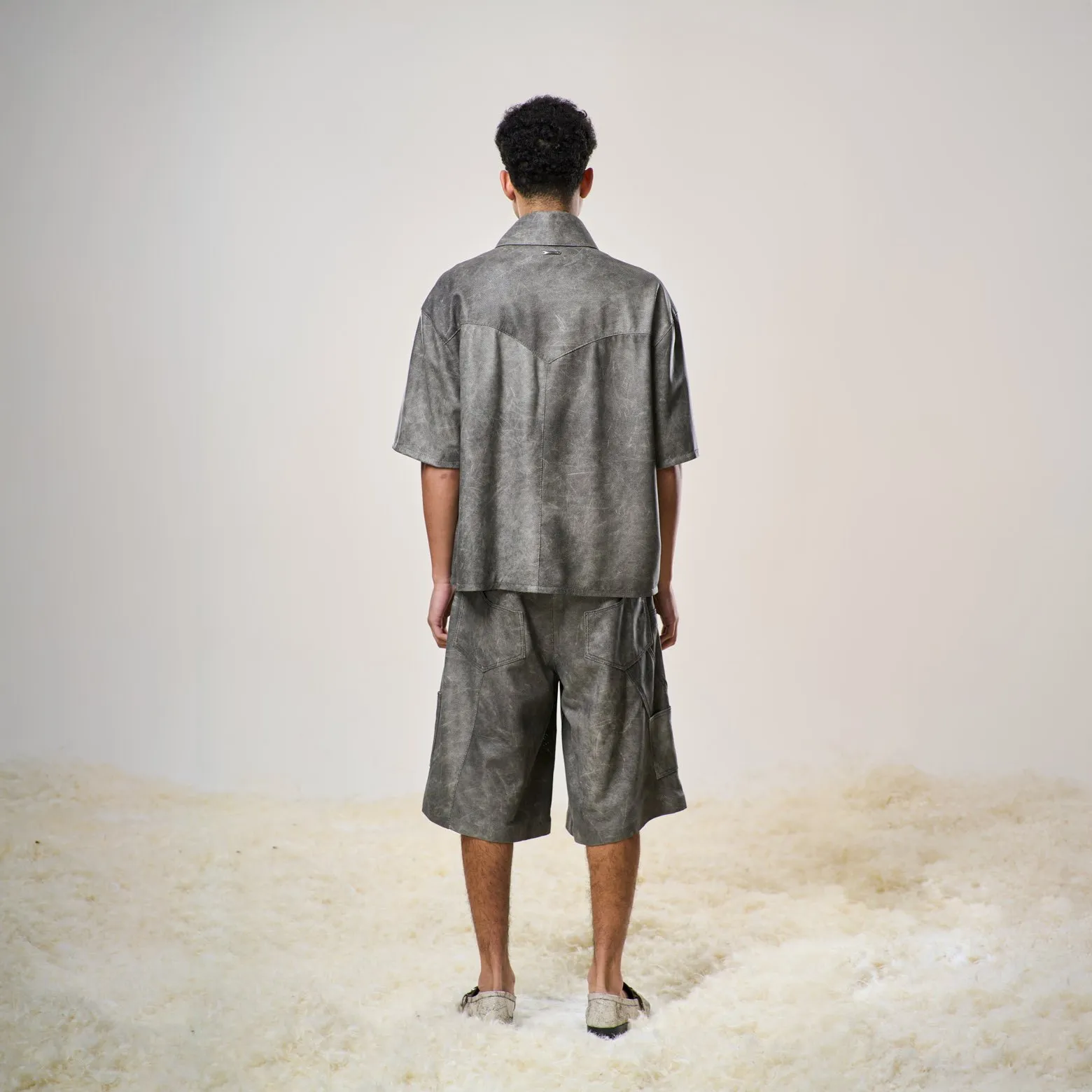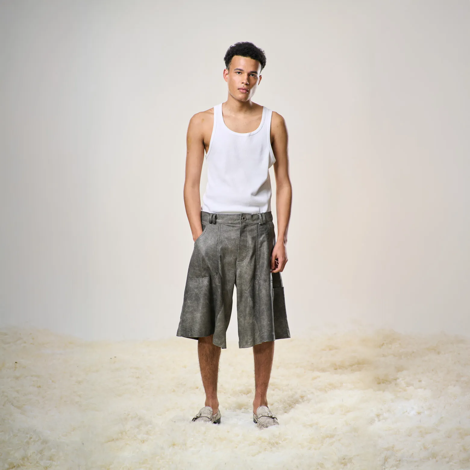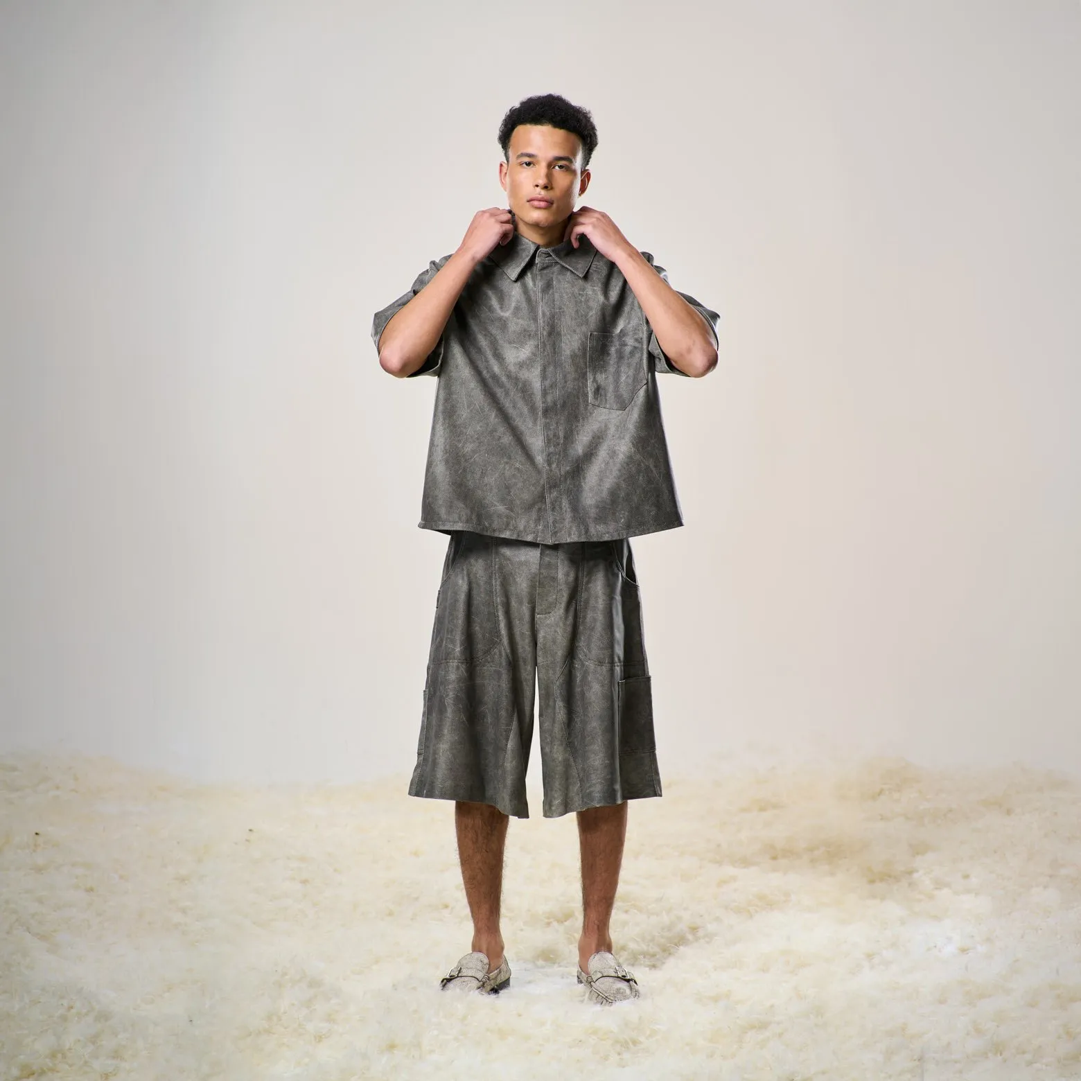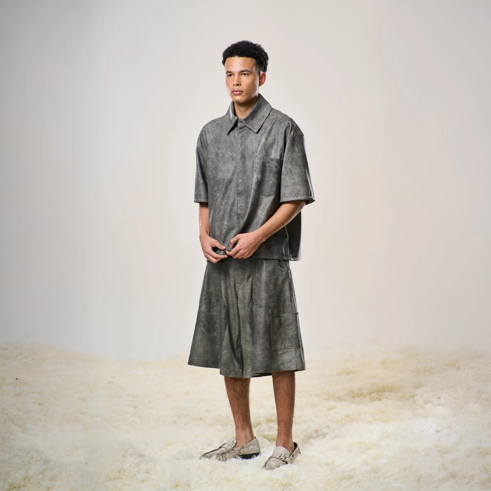 Perforated Leather Jorts – Light Grey