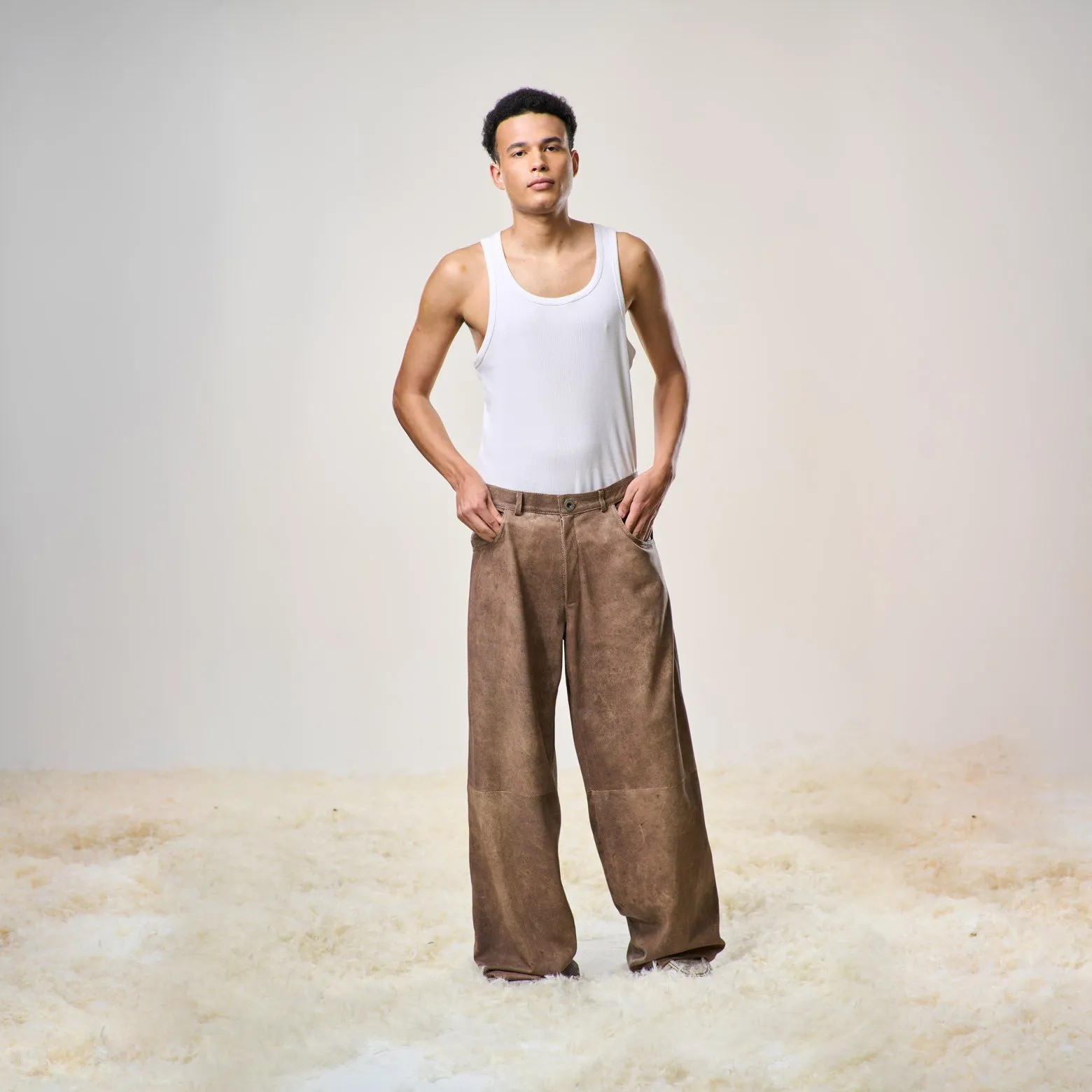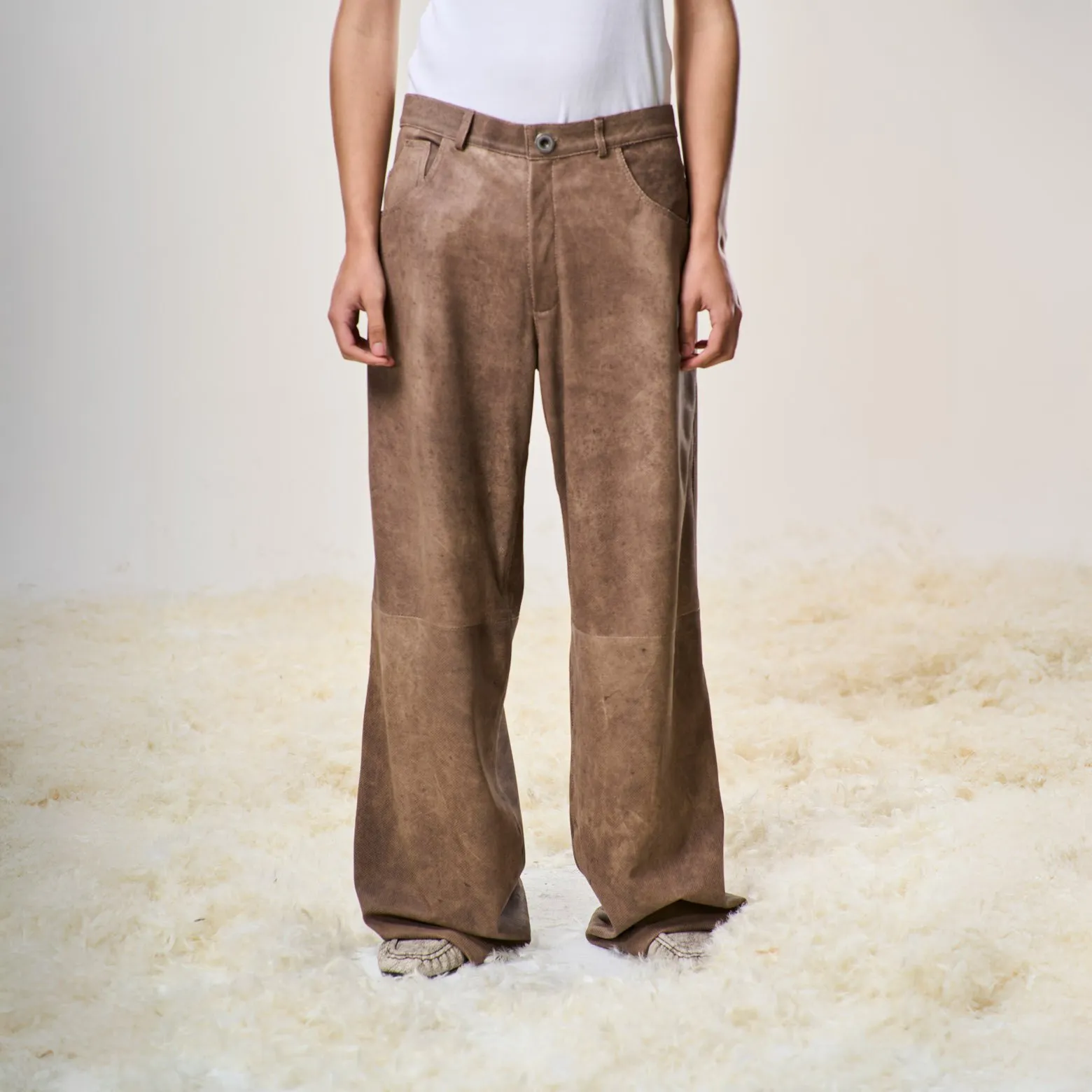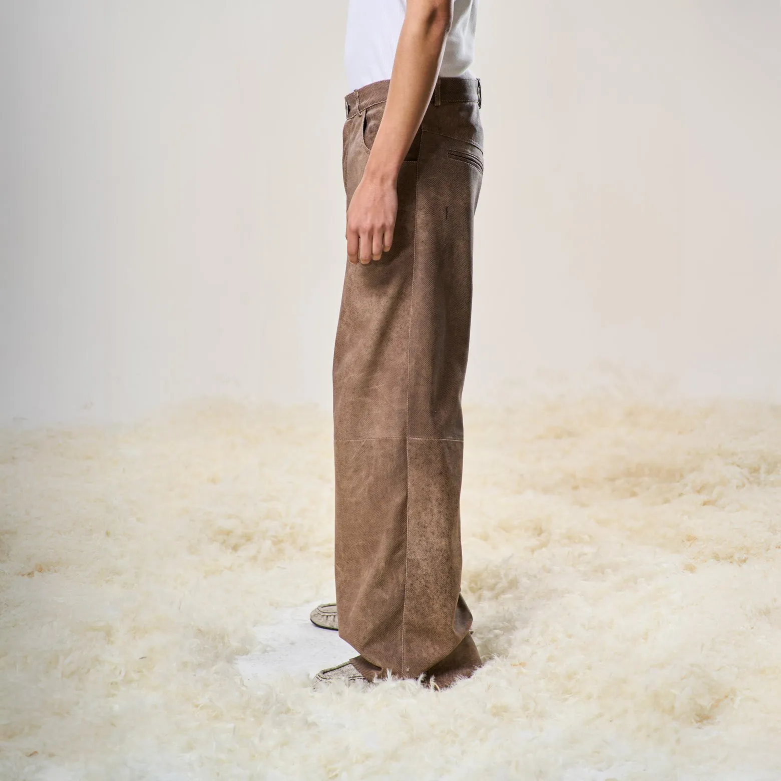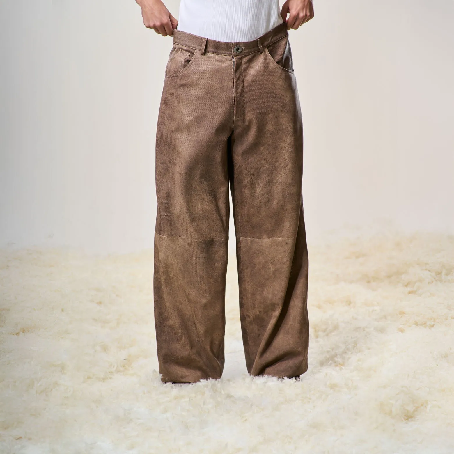 Perforated Leather Pants – Light Brown