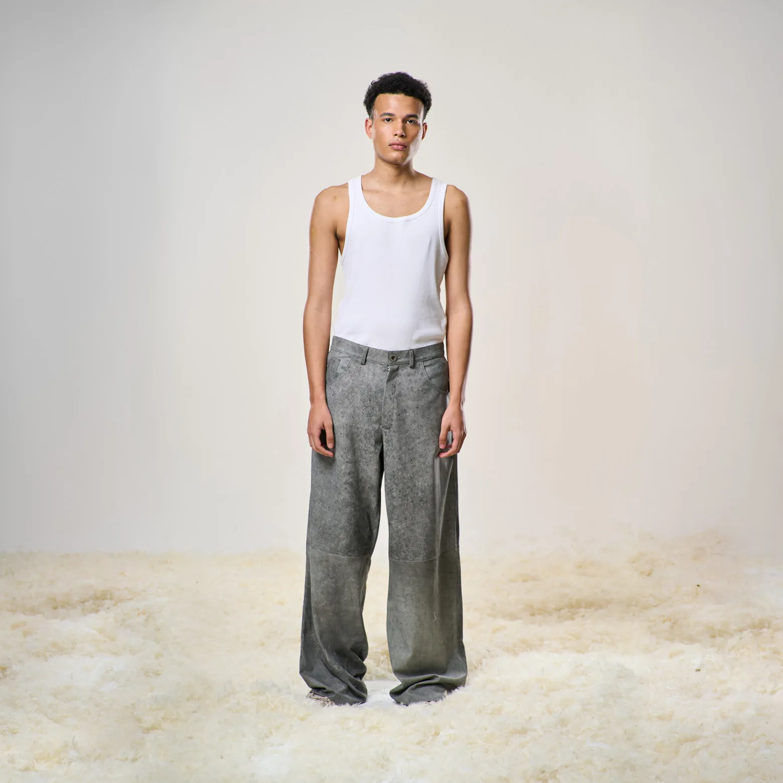 Pantaloni in pelle traforata dal taglio rilassato, ideali per l’estate