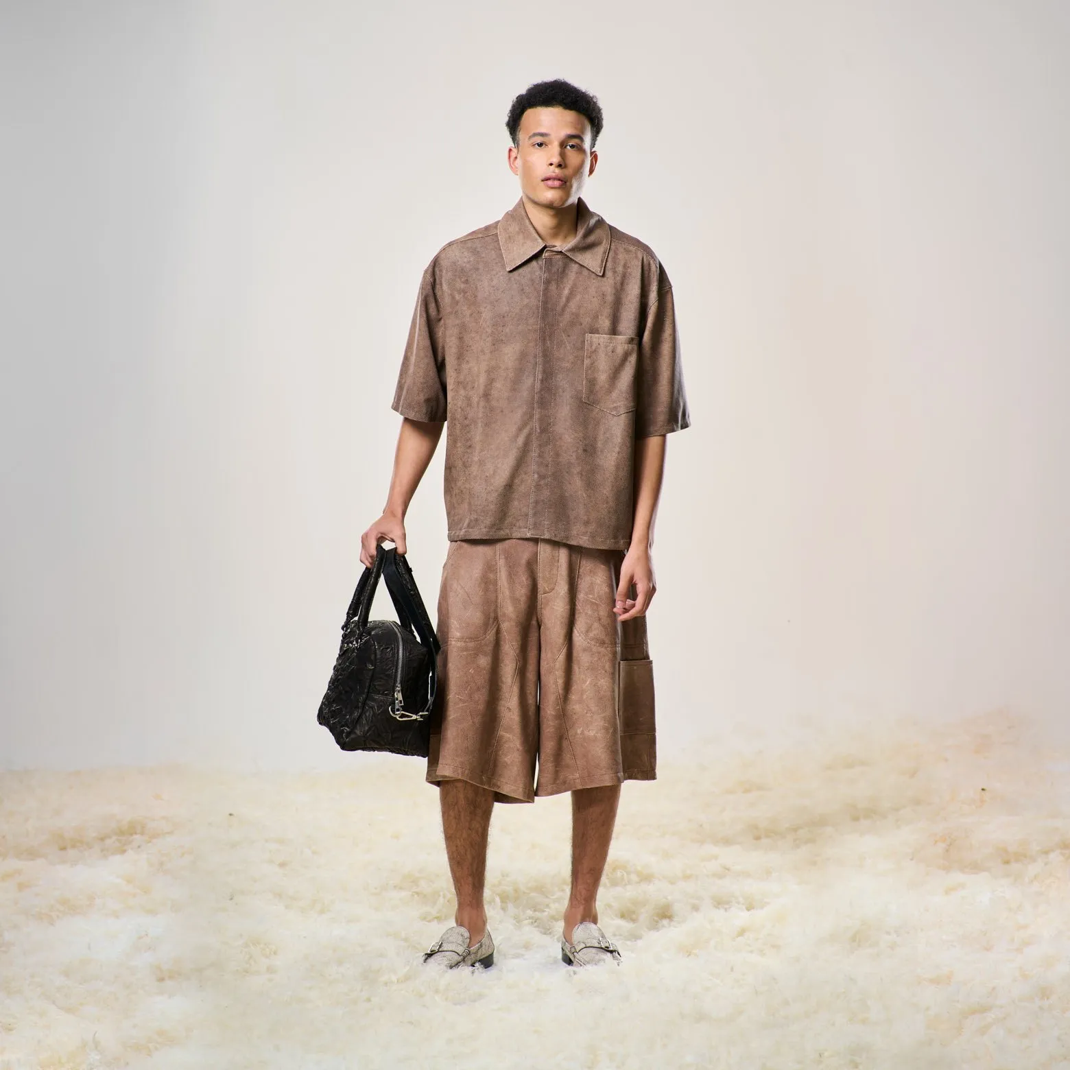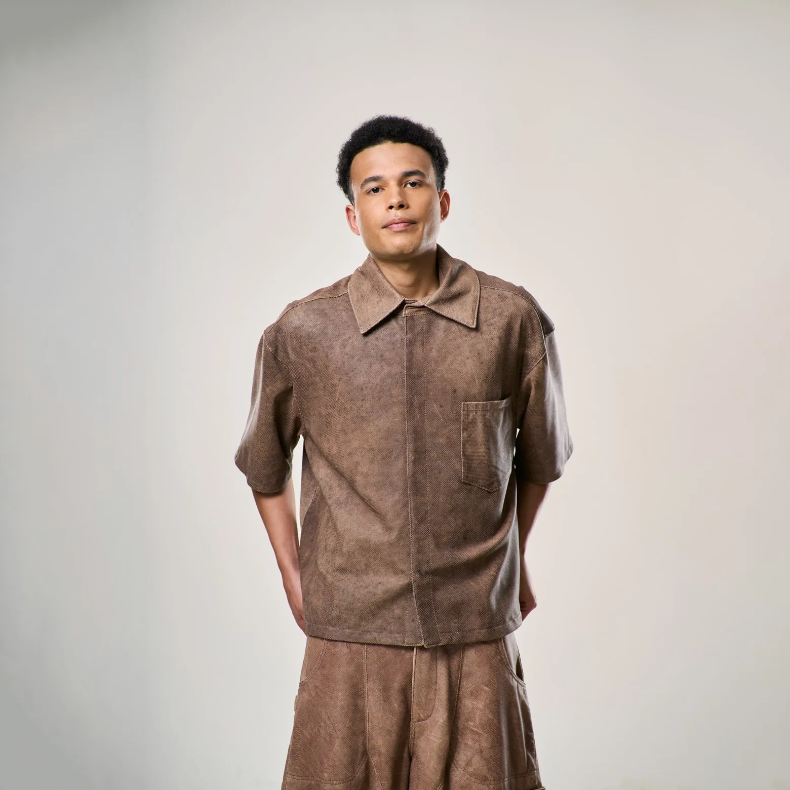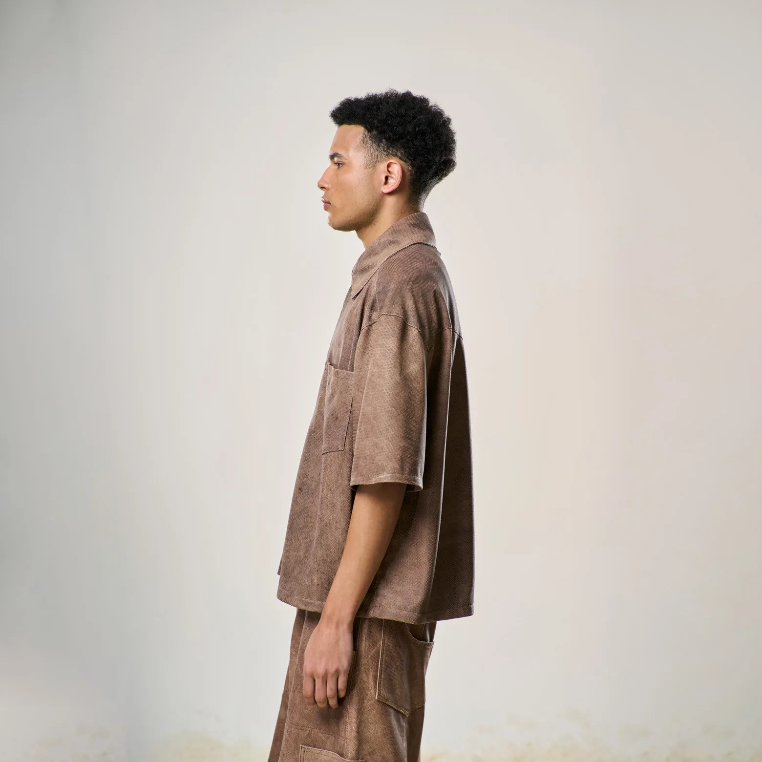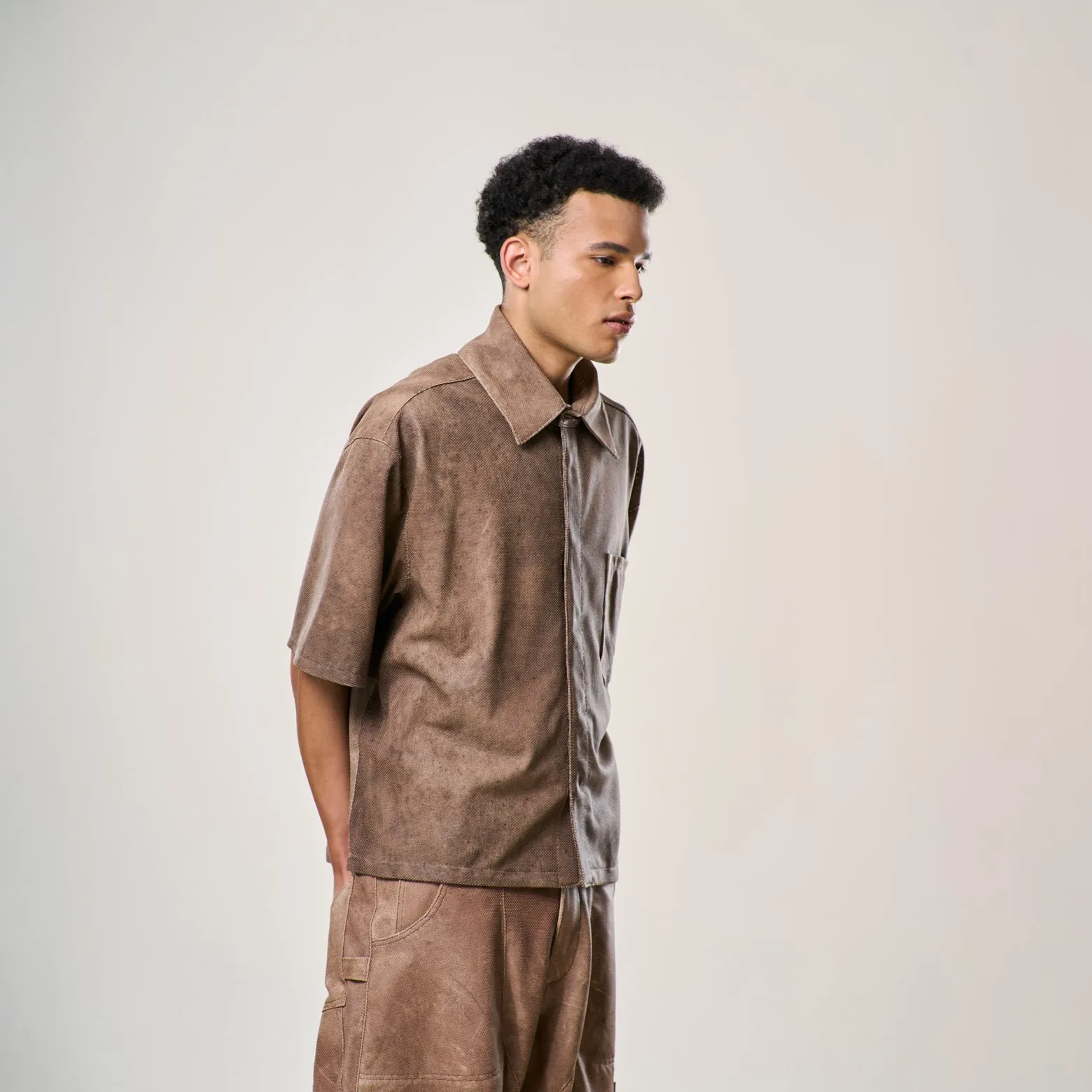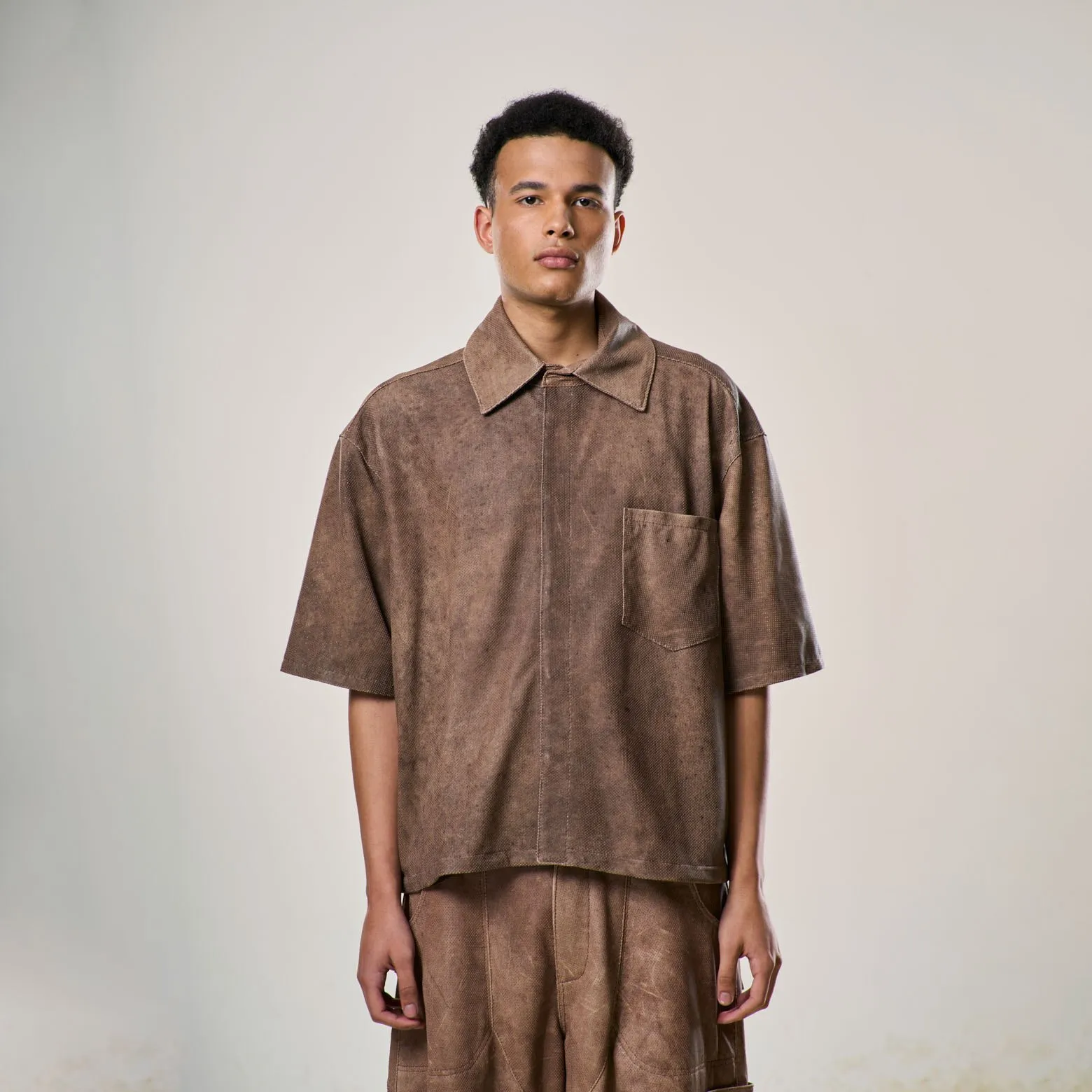 Perforated Leather Shirt – Light Brown