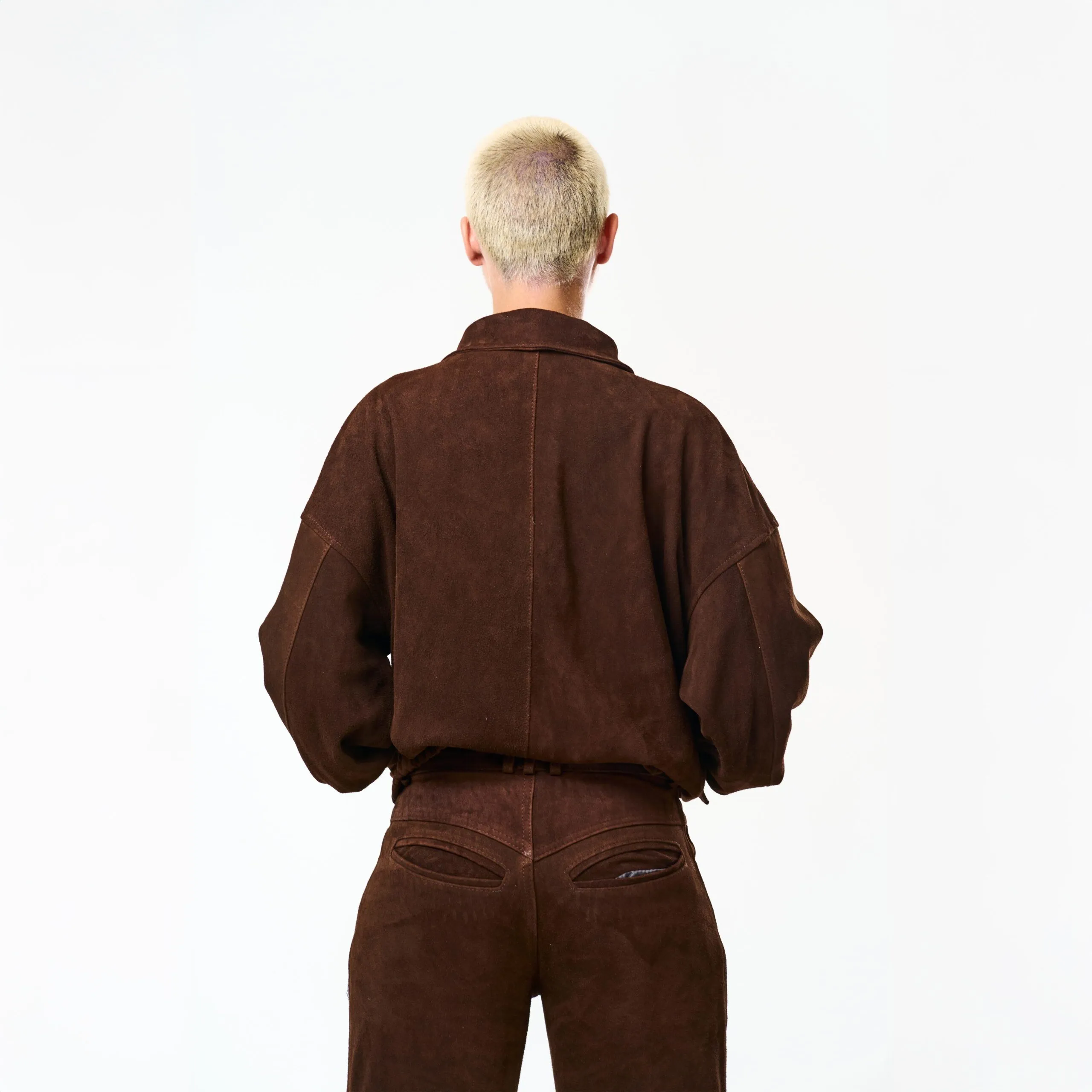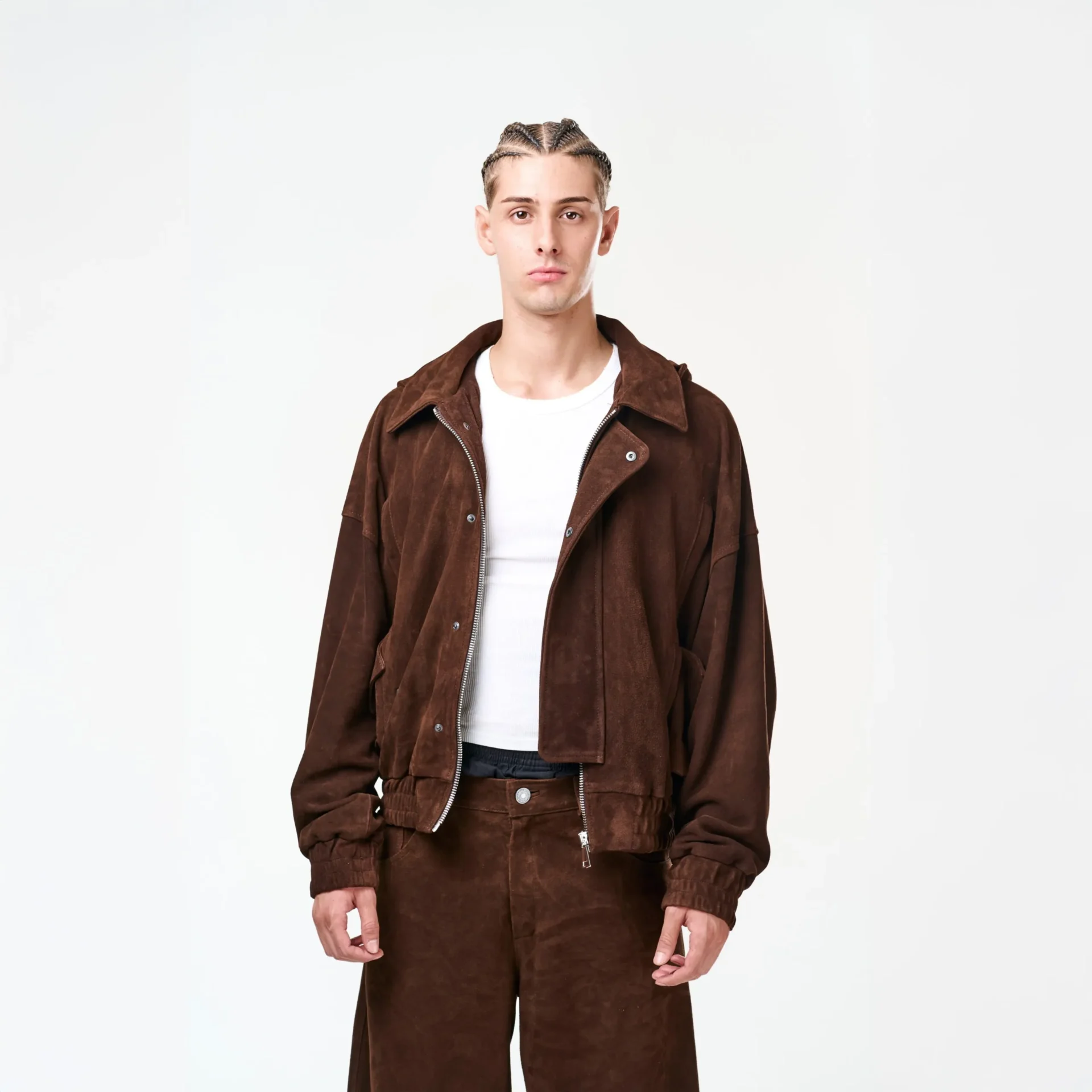 Il RAAS Brown Luxury Suede Bomber rappresenta una nuova interpretazione del bomber in pelle, caratterizzata da linee essenziali e dettagli futuristici. Realizzata in pelle di capra dalla texture morbida e opaca, è confezionata interamente a mano in Italia dalla nostra conceria di famiglia. Ogni capo è unico e riflette l’estetica distintiva di Demiurgo: artigianalità, ricerca e carattere.