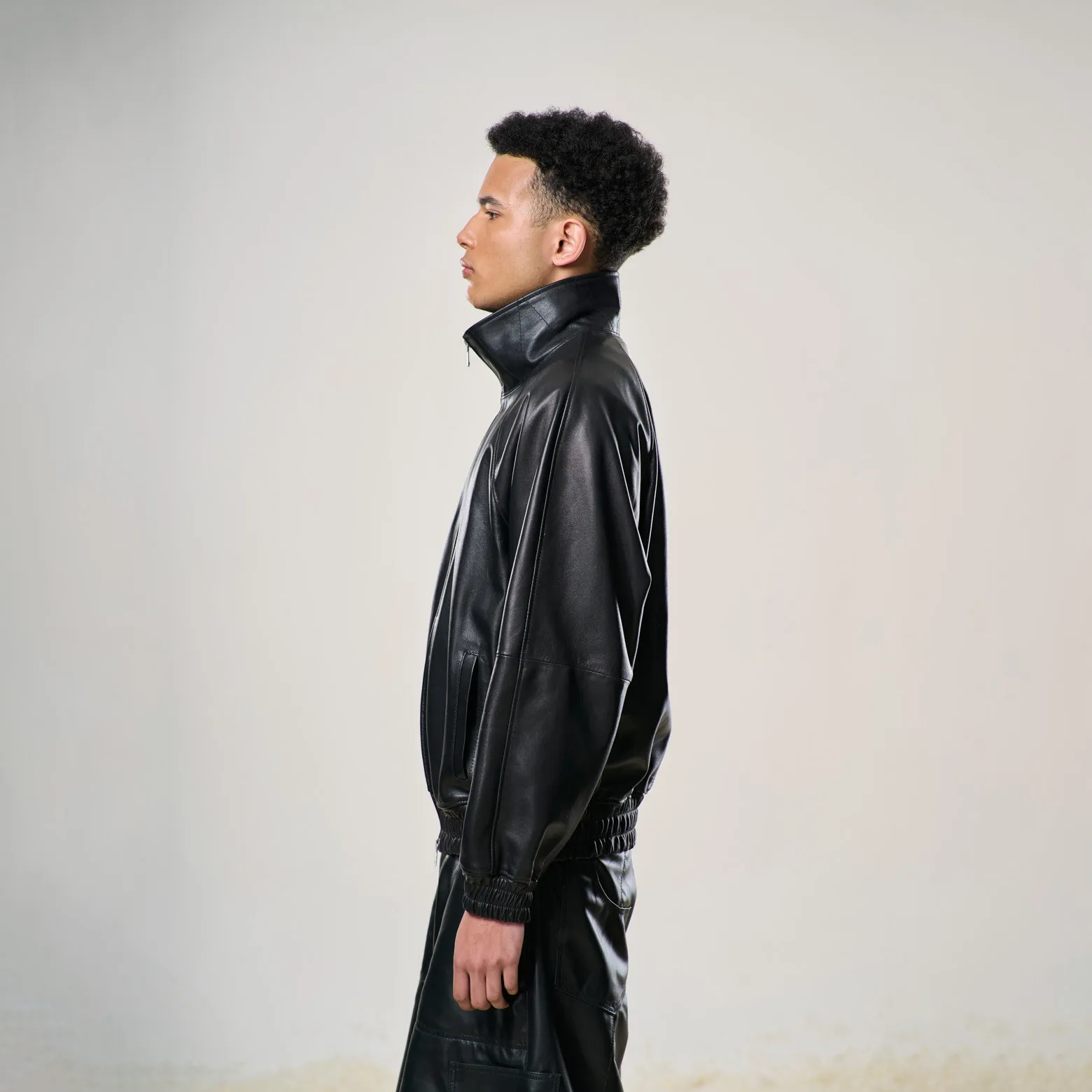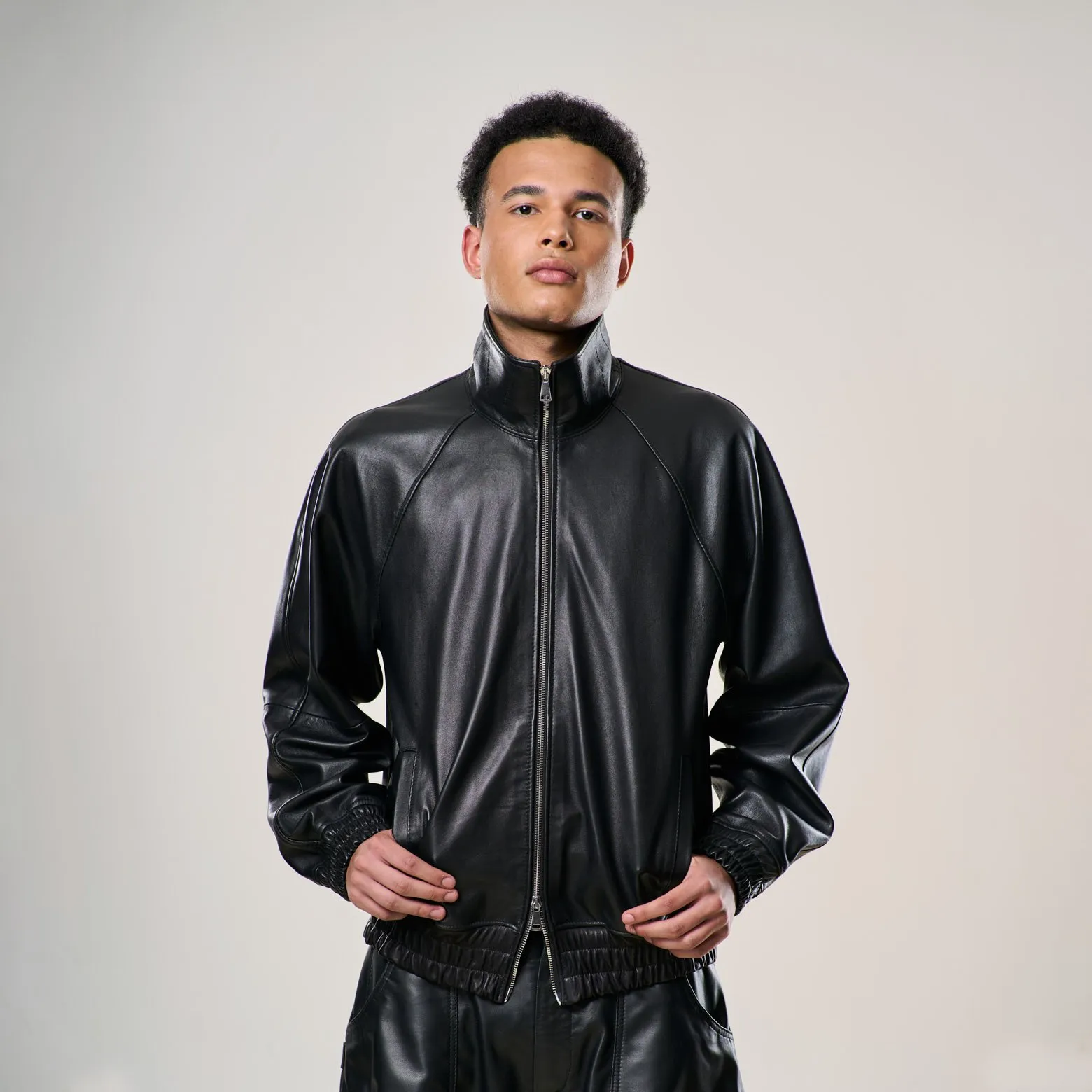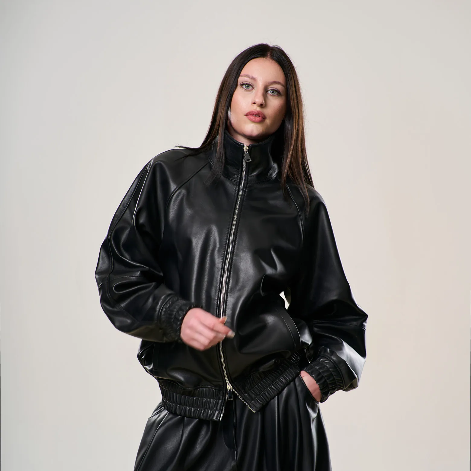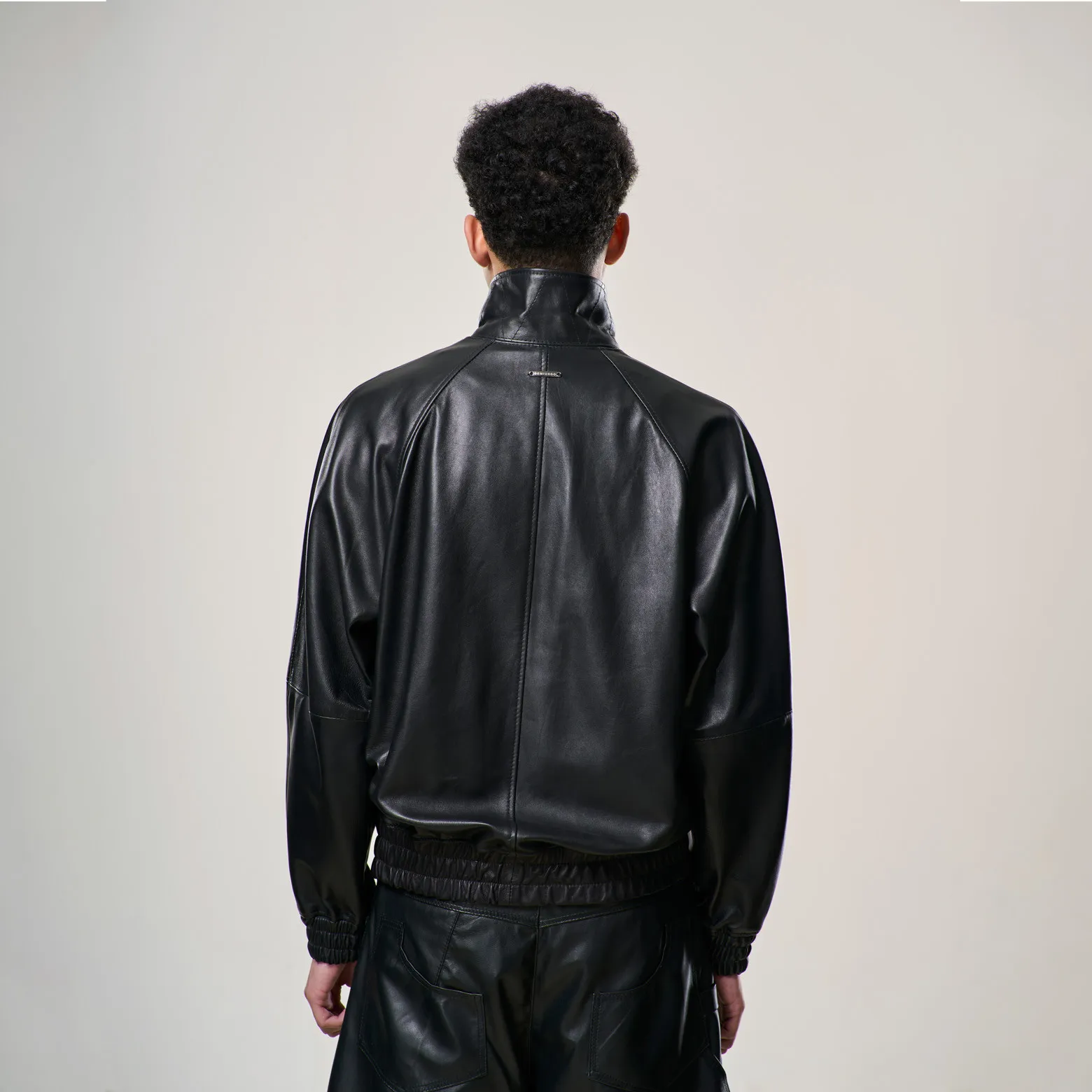 Track jacket in nappa di agnello, progettata per un’estetica contemporanea e una vestibilità over.