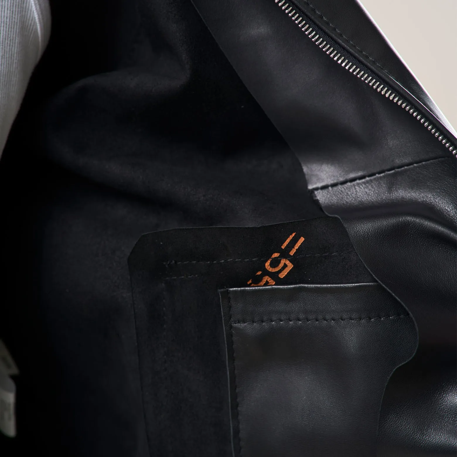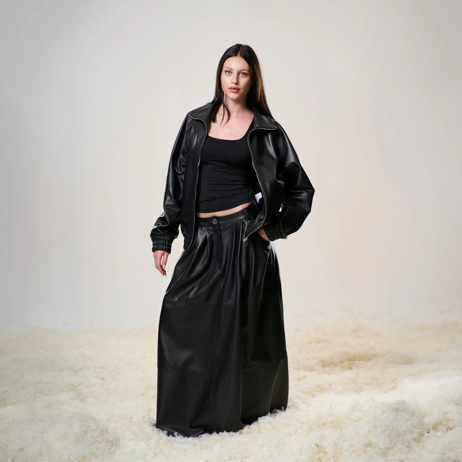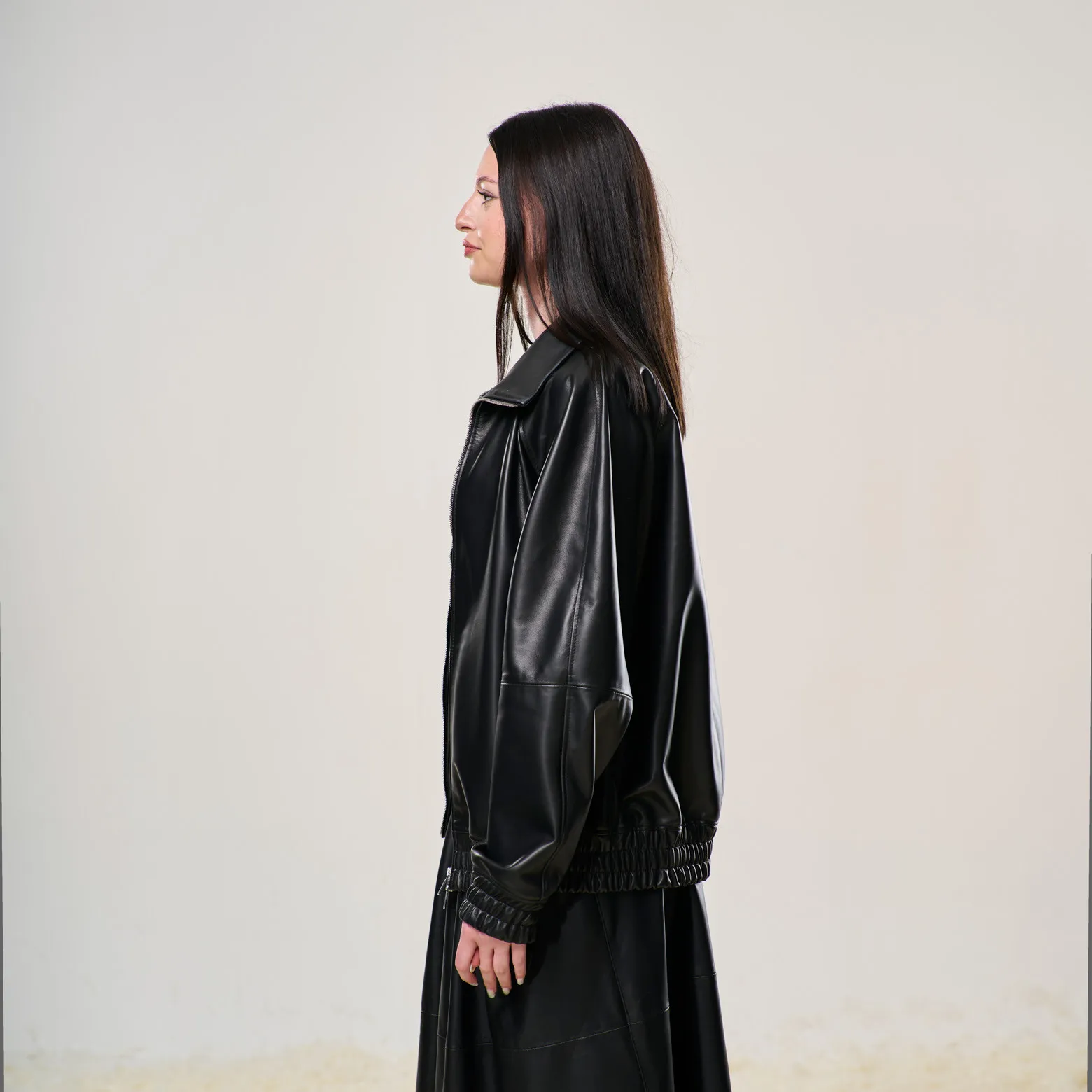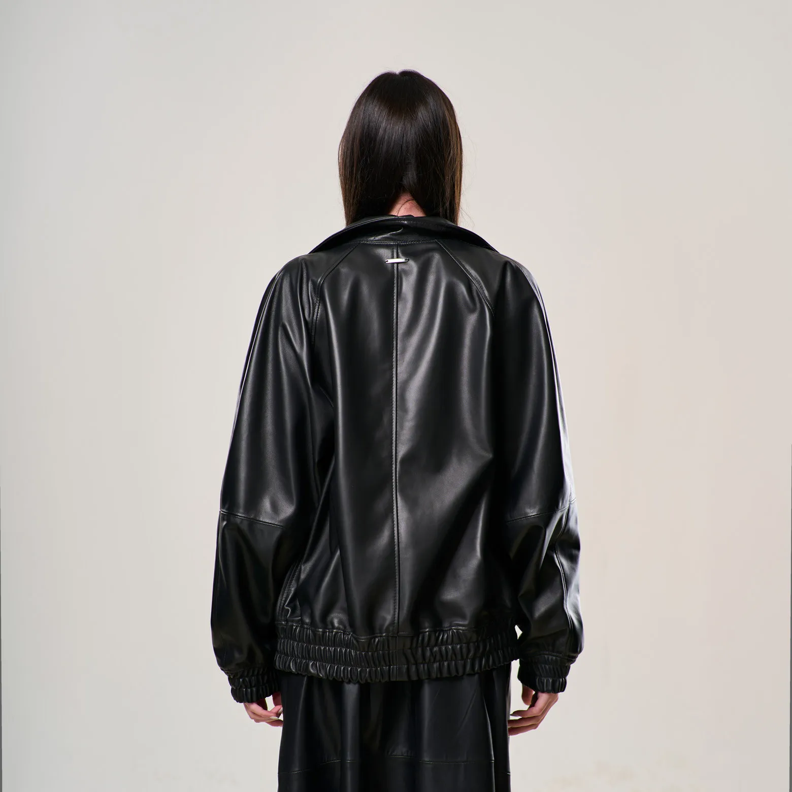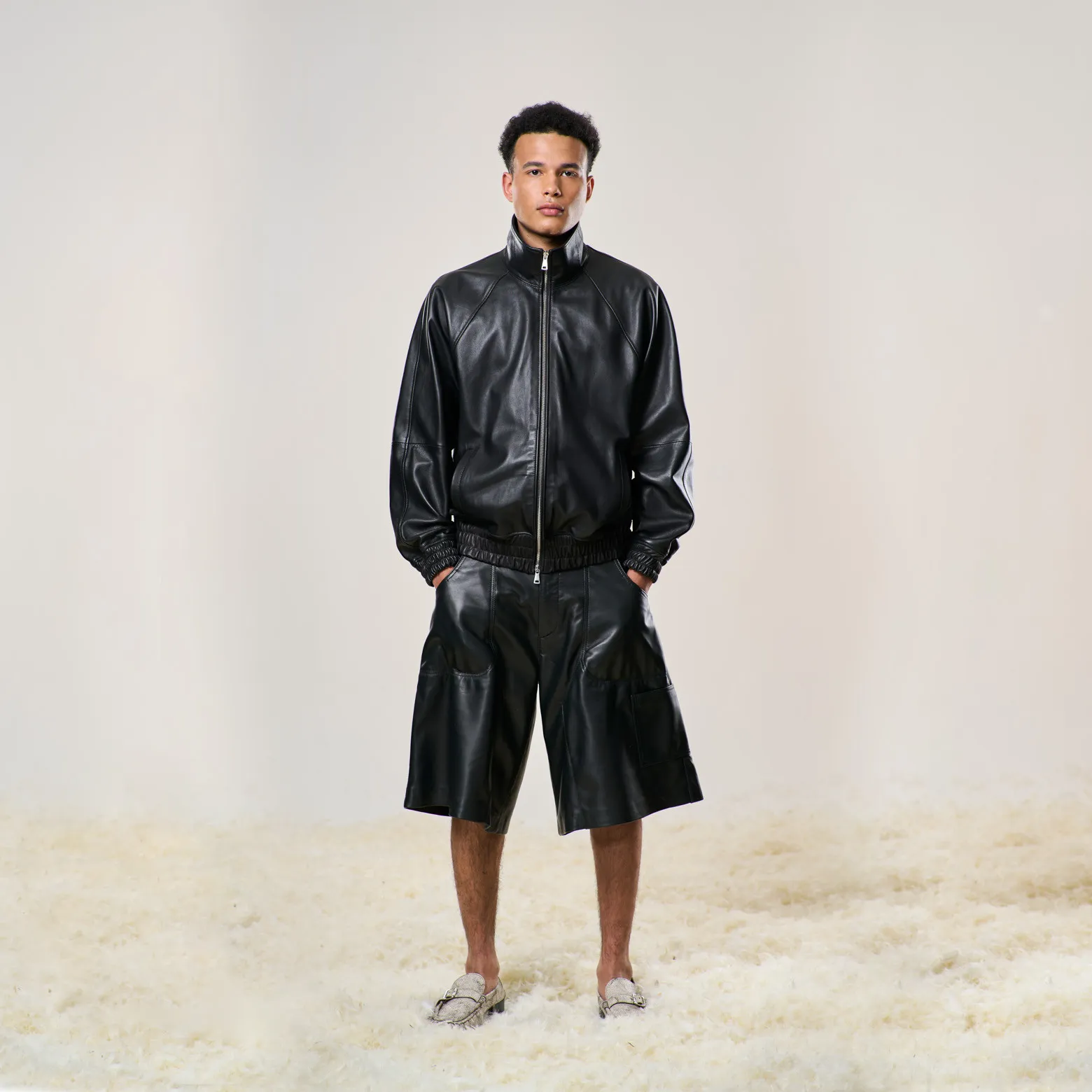 Track jacket in nappa di agnello, progettata per un’estetica contemporanea e una vestibilità over.
